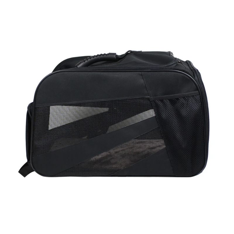 • Pet carrier for medium-sized animals with luggage-style maneuverability for on-the-go critter owners