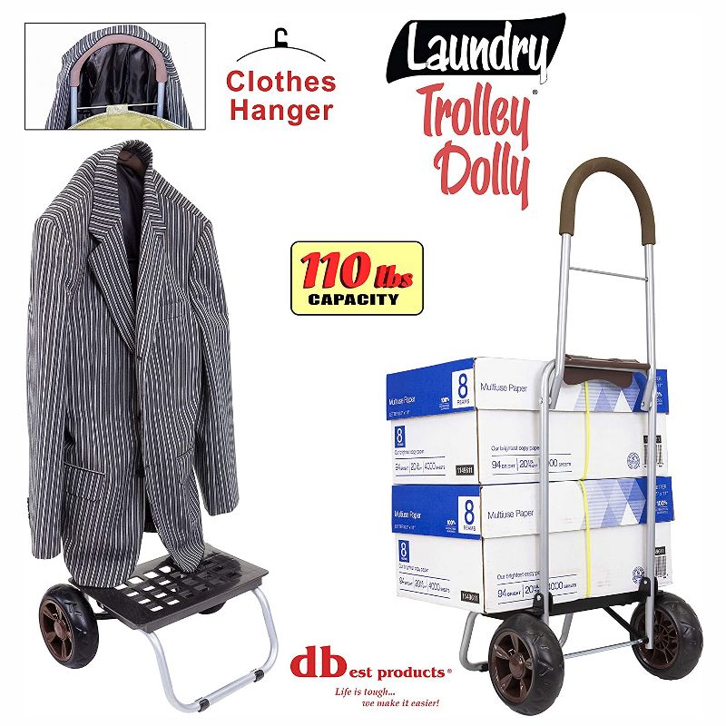 • Tubular aluminum dolly is capable of carrying up to 110 pounds of laundry or other items