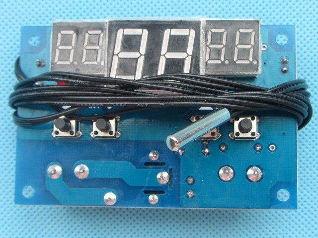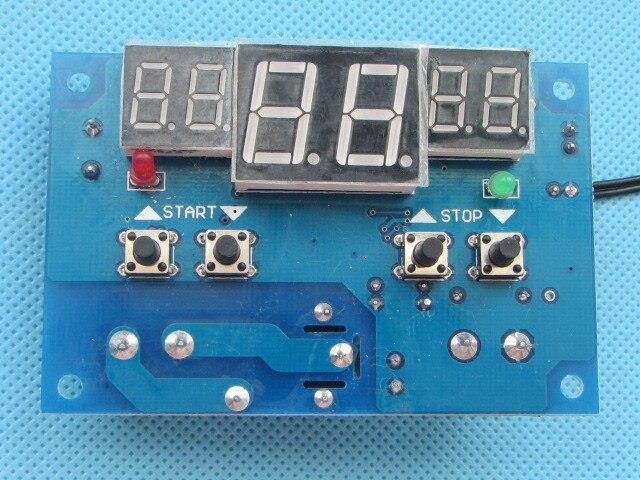 Description 1. Temperature range: -9 ~ 99 centigrade 2. Temperature Accuracy: 1 centigrade 3. Control accuracy: 1 centigrade 4. Setting Range: -9 ~ 99 centigrade 5. Refresh rate: 0.5S 6. Input Power: DC9V ~ DC15V 7. Output: relay output, capacity 220V 10A/12V 10A 8. Environmental requirements: -10 ~ 60 centigrade 9. Humidity: 20% -85% 10. Size: 78x51mm 11. Temperature sensor: NTC(3950-10k 1%) 12. Applicable to Various spatial temperature control,Water temperature control,Incubators, etc. Indicator 1. Red start Indicator: START (red) indicator light, which means that the relay is closed, the device begins to work 2. Green stop light: Stop (green) light is on, which means that the relay is disconnected, the device stops working 3. Digital Tube: Middle red LED display for the current detection temperature, the left green digital display tube as set start temperature, the right side of the green digital display for the set stop temperature. High temperature start: Set the starting temperature value> stop temperature value, When the detected temperature = start temperature, the relay is closed, refrigeration equipment work; When the detected temperature = stop temperature, the relay off, refrigeration equipment stops working. For example Set the starting temperature is 30 centigrade , stop temperature is 25 centigrade , When the detected temperature = 30 centigrade , the relay is closed, the start Indicator (red) lights; When the detected temperature value = 25 centigrade the relay off, stop I