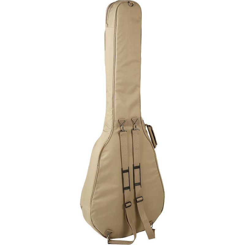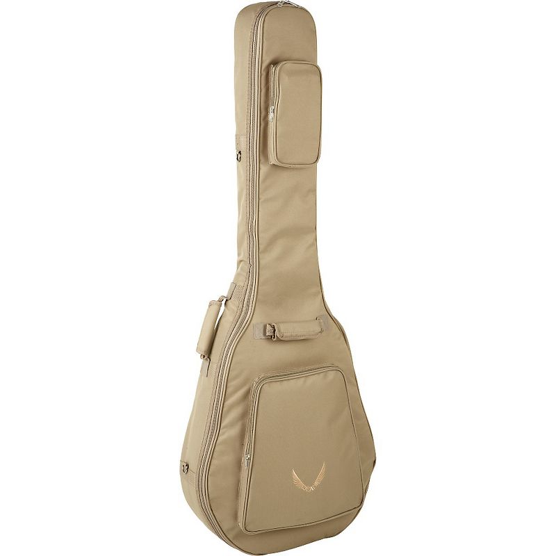 The Dean Acoustic Bass Gig Bag offers a unique look in gig bags. Backpack-style straps make it easy to haul bass around on the street or subway. Roomy pouch has plenty of space for strings, straps, music, and more. The Acoustic Bass Gig Bag is brown with a gold-colored Dean logo.
