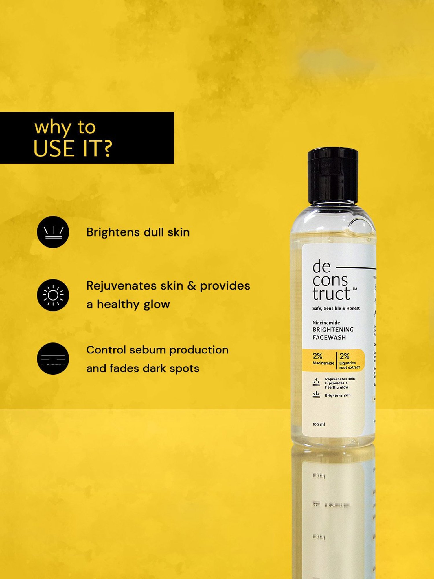 Rejuvenate your skin with this brightening facewash from Deconstruct which is a combination of niacinamide and liquorice root extract that works together to control and fade dark spots and brighten up your skin. Liquorice root extract prevents the production of the enzyme responsible for pigmentation while niacinamide prevents the transfer of the enzyme.