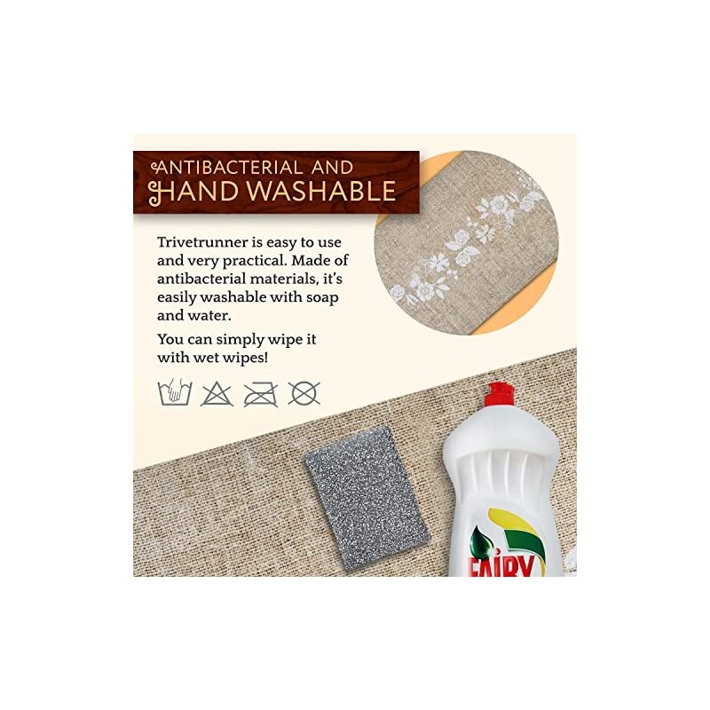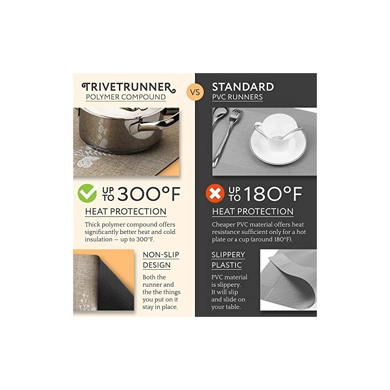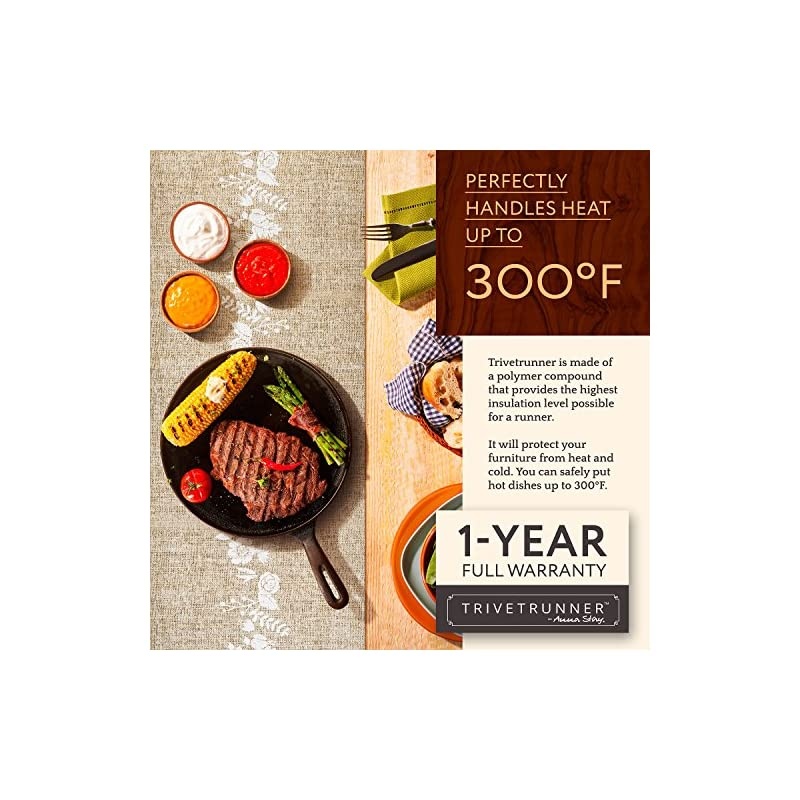 Color: Jute & flowers Looking for a stylish, decorative kitchen table runner to use as a trivet or table hot pad during the holidays? or as a TV conter top protector? GET THE TRIVETRUNNER! The perfect way to keep your furnitures or table cloths stain-free & protected during the meals or parties. The is a uniquely stylish; practical home kitchen gadget 2 in 1; table runner plus a trivet. A perfect table counter mat and a holiday giftsWHAT MAKES THE SPECIAL? PROTECTS Handles up to 300 F so safe to put hot pots & cold dishes, protecting your furniture, dressers QUALITY MATERIAL Insulated natural polymer & polyester. LONG RUNNER Dimensions are 11.81 inches wide & 39.37 long so fits most table or countertops surfaces. CONVENIENT Lots of room for various hot & cold items so no need of multiple trivets or pads. ANTI-SLIP, WATERPROOF Once flattened, it stays put. ATTRACTIVE The JUTE design perfect for parties, dinners, or for holiday as well as everyday. popular gift for women and men or as a gifts for couples, gift for mom, mother in law a gift for bakers and for every kitchen lovers
