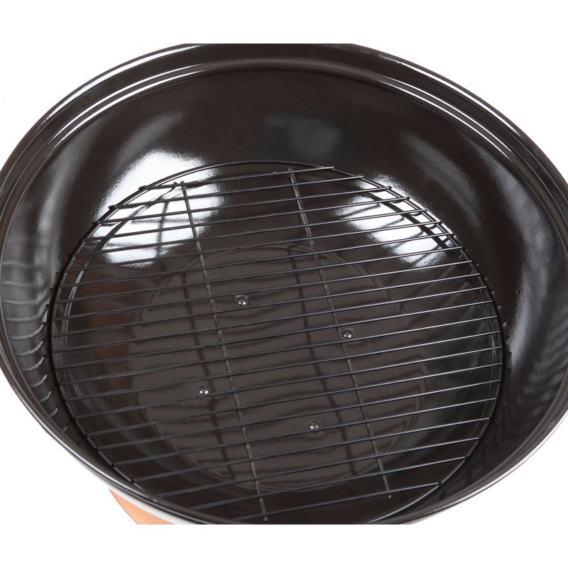 This unique 26" fire pit features an attractive enamel-painted fire bowl and base with a beautiful copper and black gradient finish. This fire pit comes complete with a dome mesh spark screen with high heat paint and a screen lift tool. Also included is a wood grate and a cooking grate.
