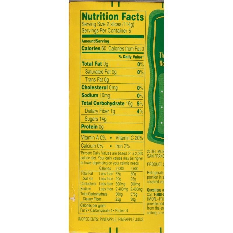 Del Monte Sliced Pineapples are picked and packed at the peak of ripeness. Featuring sliced pineapples in 100% juice, this delicious fruit is a tasty topping for yogurt, cereal, salads and more! Combine with your favorite flavored gelatin for a fun and festive treat. For a tasty dessert, top with crumbled chocolate cream-filled cookies. Also makes a colorful and refreshing fruit topping for ice cream or frozen yogurt! Del Monte works hard to cultivate the freshest, most nutritious fruits and vegetable to use in every one of our products. When you trust Del Monte, you can be sure what you're buying is the peak of quality and nutrition!