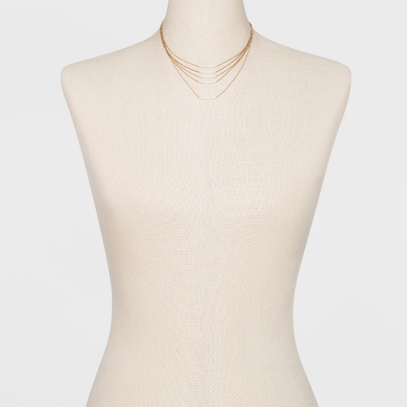 Add a sophisticated glow to any outfit with this layered chain necklace! The metal tubes makes it a sleek and modern look. You will be the envy of all your friends with this perfect accessory! If you’re not satisfied with any Target Owned Brand item, return it within one year with a receipt for an exchange or a refund.