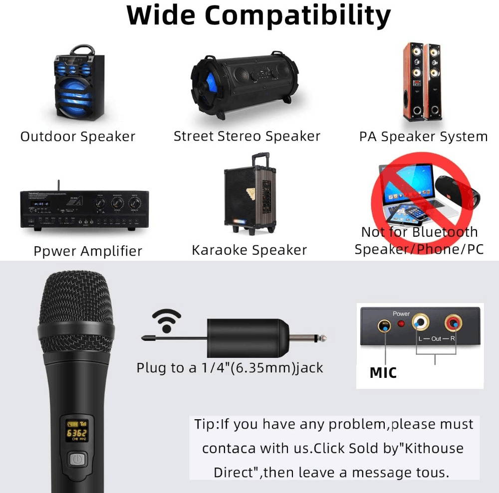 ?This wireless handheld microphone receiver has a 6.35mm (1/4”) output that you can connect to any sound system such as PAs, mixers, speakers, amplifiers and karaoke machines.