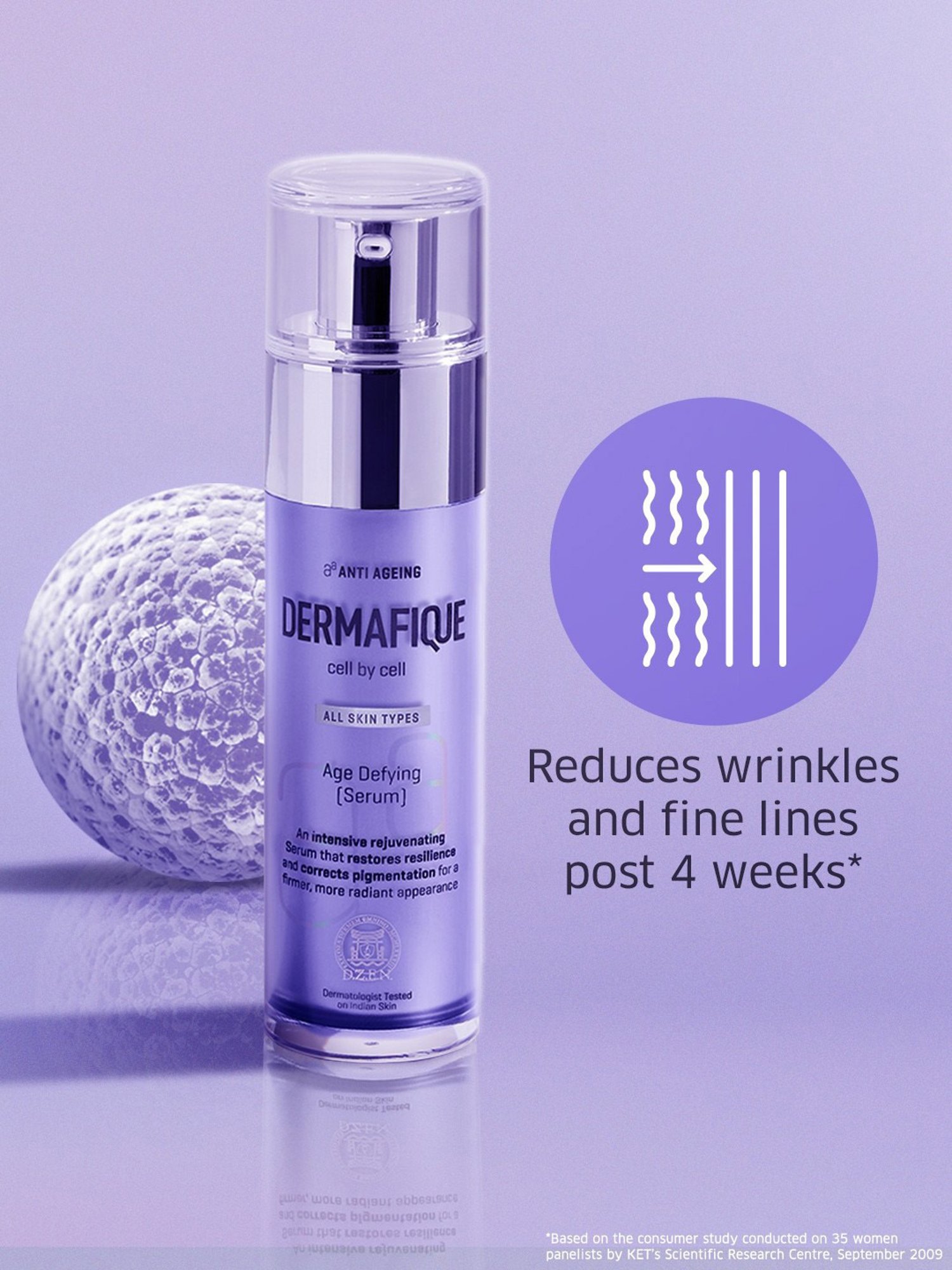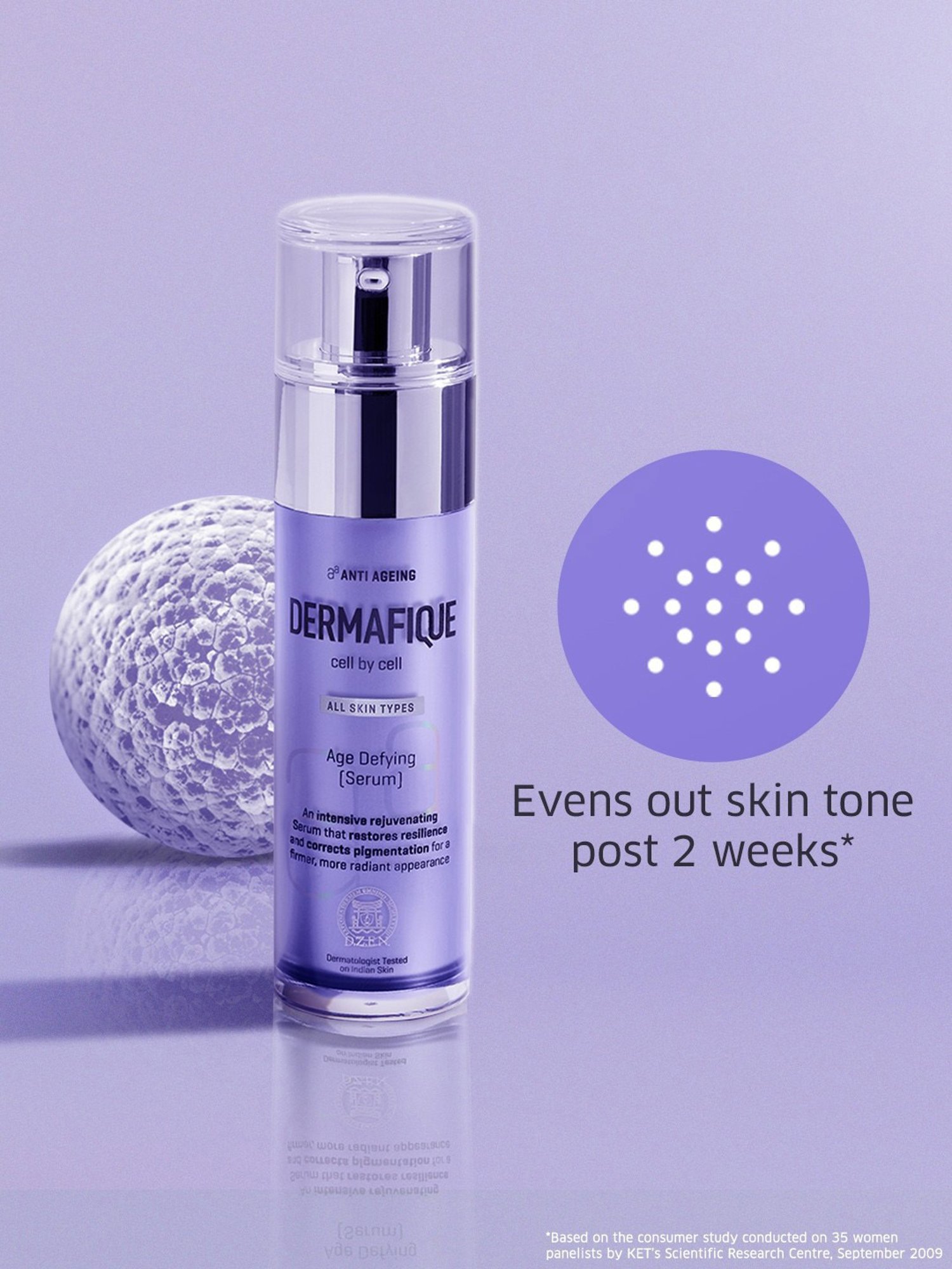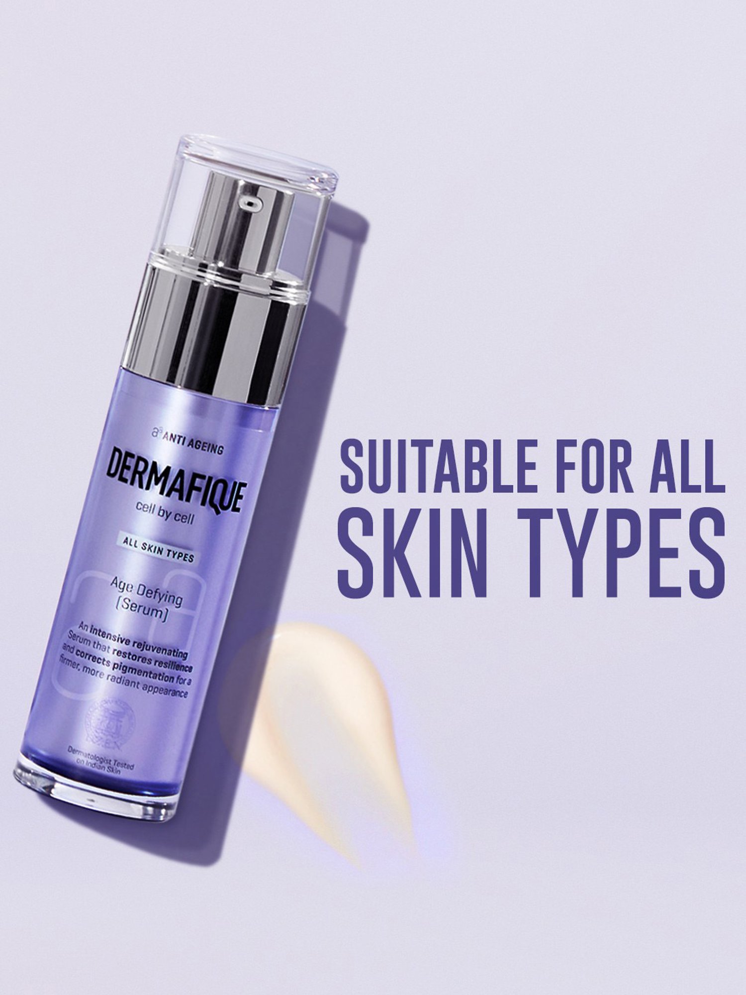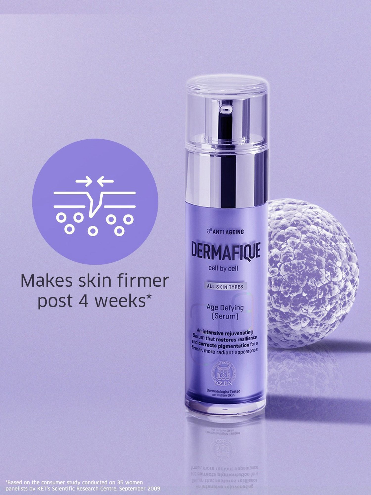 The skin ageing process is constantly at work below the skin's surface and manifests outside gradually. The Dermafique Age-Defying Serum is an anti-ageing serum powered by advanced Plant Stem Cell Technology known as PhytoCellTec. It is made from the stem cells that are extracted from Uttwiler Spatlauber, a rare Swiss apple that is celebrated for its exceptional longevity and regenerative power. This anti-ageing serum boosts the cell renewal process and aids collagen regeneration, and thus preserves the springiness of the skin and delays the effects of ageing.