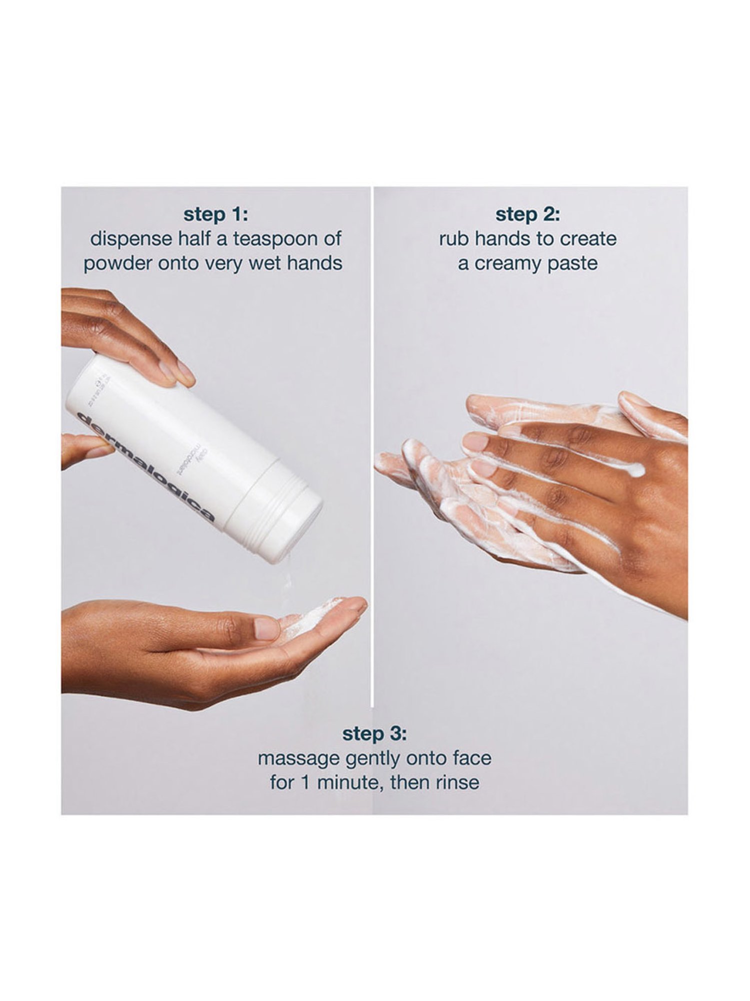 Step 1 - Dispense about a half-teaspoon of daily microfoliant into very wet hands and create a creamy paste by rubbing hands together. Step 2 - Apply to face in circular motions,avoiding the eye area. Step 3 - Massage gently for one minute,then rinse thoroughly. |