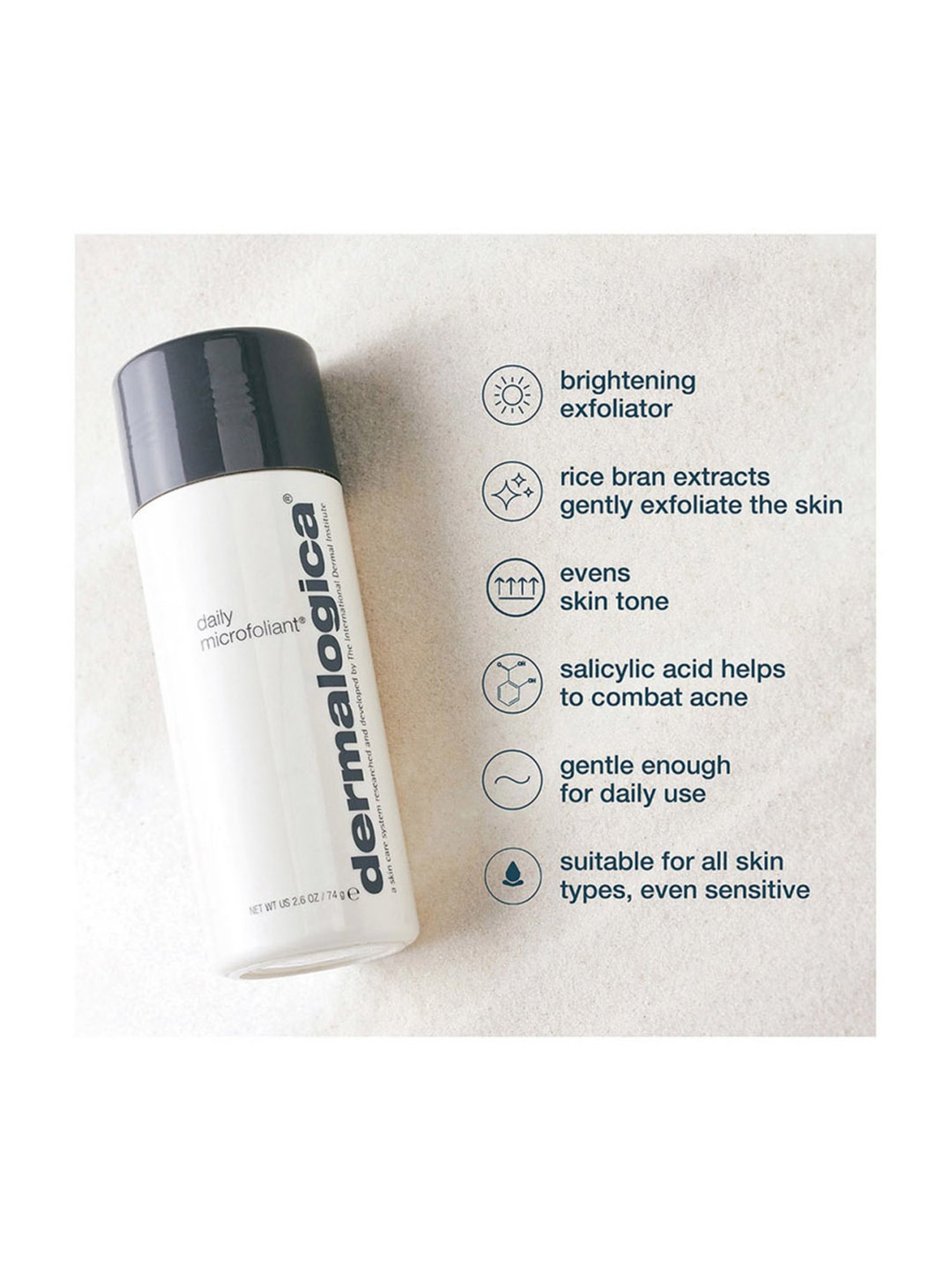 Achieve brighter, smoother skin every day with this iconic daily microfoliant. This rice-based powder activates upon contact with water, releasing papain, salicylic acid and rice enzymes to polish skin to perfection. A skin brightening complex of phytic acid from rice bran, white tea and licorice helps balance uneven skin tone while a super-soothing blend of colloidal oatmeal and allantoin helps calm skin. It is gentle enough for daily use.