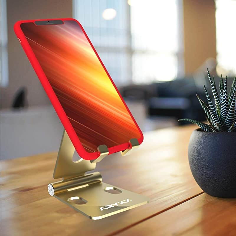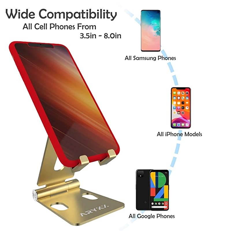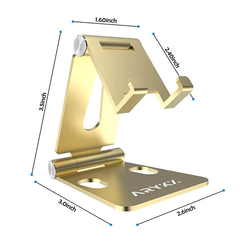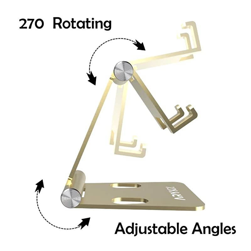 Color: GoldTired of dealing with neck strain after using your phone for too long? You usually prop up your phone or tablet against the wall or a stack of books whenever you use it for watching movies, reading ebooks, or playing games. Yet with just the slightest vibration, your device slips out of place and disrupts your viewing experience. Using a phone holder can be a solution, but most of these are made of flimsy plastic and only provide a fixed viewing angle. What you need is a sturdy, wobble-free, and adjustable device holder to make way for comfortable smartphone or tablet use. Enjoy hands-free viewing and playing with the Desktop Phone Holder Stand. This adjustable phone stand is the perfect holder for your electronic devices, keeping both your hands free to work, cook, or take notes. It's also compatible with the Nintendo Switch's tablet, so you can play comfortably without the full weight of the console on your hands. The holder is fitted with rubber pads to protect your phone and gadgets from getting scratched or scuffed. The base of the holder is also fitted with anti-skid rubber pads, so you don't have to worry about the stand slipping and sliding.