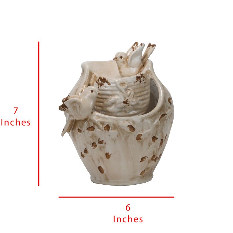 The Foreside Ivory Birds Fountain is a great way to bring the birds to the bird enthusiast in your life! Simple to maintain, this fountain has combined the look of a birdbath and the sounds of a well! Distressed, the finish brings this piece to life giving it extra dimension and movement along the wings of the birds! Place in your home or office today!