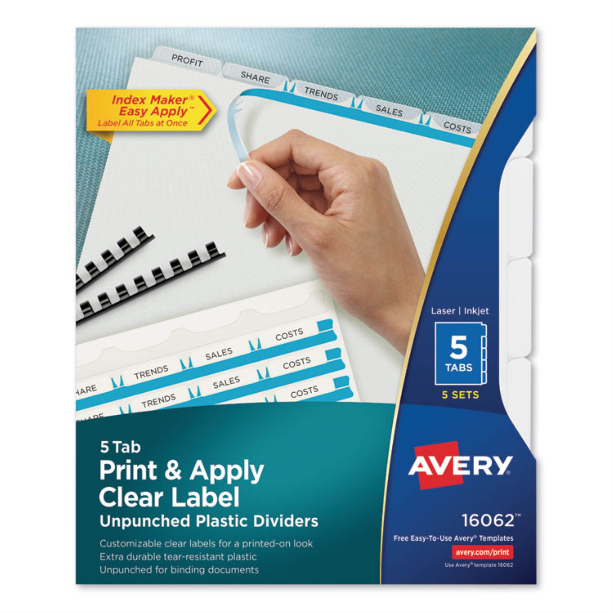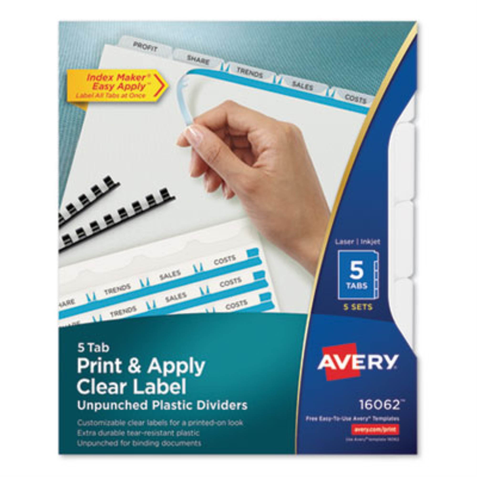 Choose unpunched tab dividers to create professional-looking customized bound documents right at your desktop. Great for use with comb or wire binding systems. Clear labels virtually disappear when applied to tabs. Save time by labeling all tabs at once using Easy Apply label strip. For laser and inkjet printers.