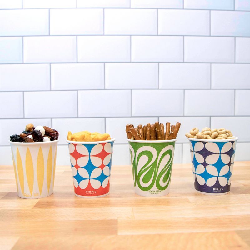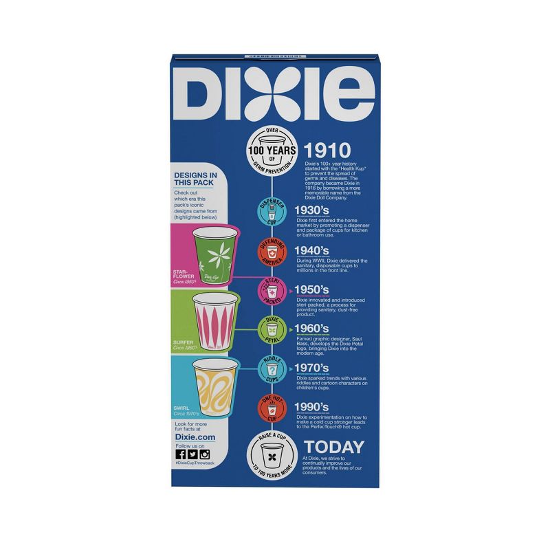 Perfect for serving quick snacks and meals on a picnic table, at the beach or while traveling, these Dixie Paper Cups are made for cold beverages. Keep plenty of Dixie Cups on hand at home for after school snacks, late night treats or any time when you want the added convenience of easy clean-up. For nearly a century, Dixie has created products to make lives easier. From the first disposable paper cup to our strong, durable and stylish modern plates, the history of Dixie is one of bringing people together. These Dixie cups come in packs of 5 oz. of 100 cups. Cup designs may vary.