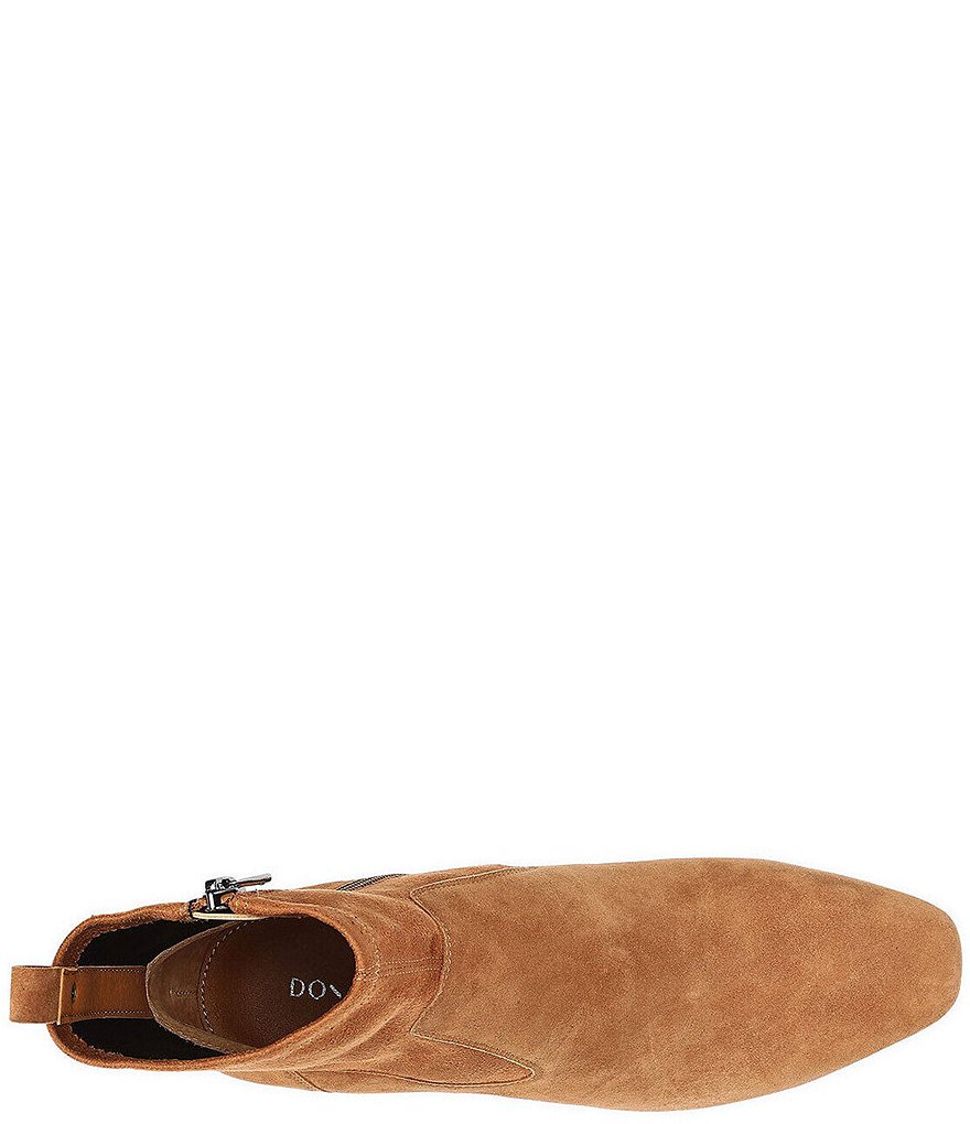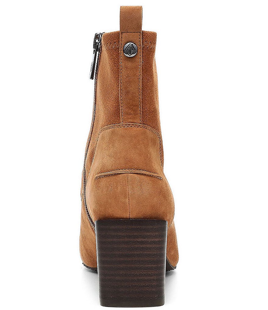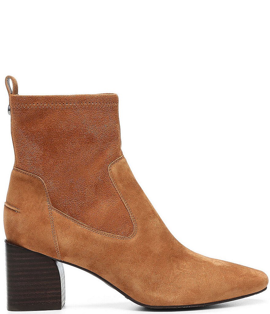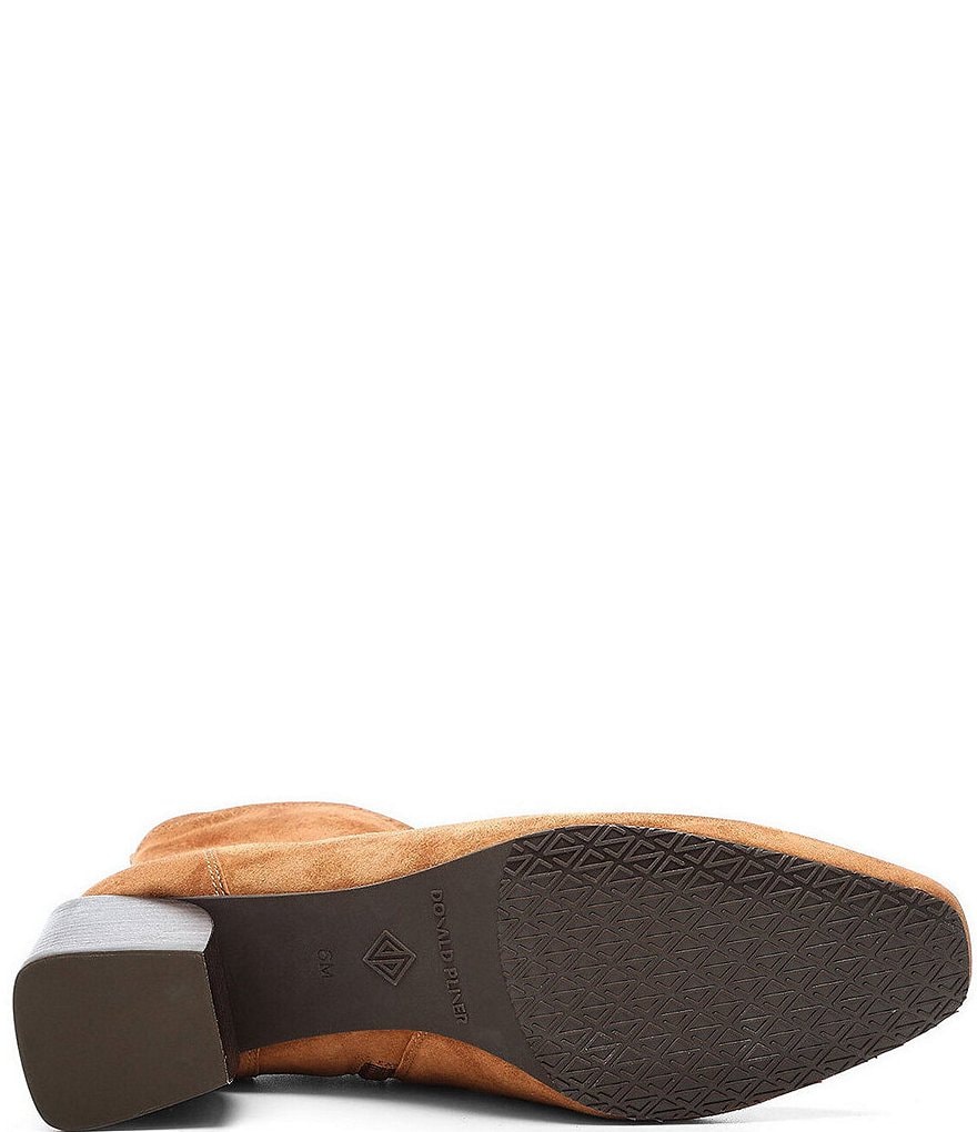From Donald Pliner, the Abbie Suede Stretch Block Heel Booties feature: