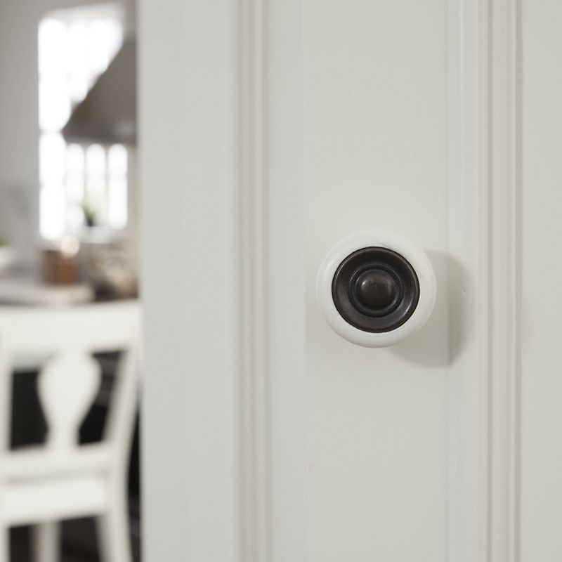 A blend of urban farmhouse style with the traditional bun foot design. Crafted of poplar solids and engineered wood panels, in a crisp white painted finish, with physical distressing and lightly hand rubbed aged areas on the edges. 2 large storage areas behind both the upper and lower framed doors, featuring two fully adjustable shelves in each area. Single framed center drawer provides additional storage for smaller items. Drawer and door pulls are a unique wood and metal combination with the center metal area finished in an antiqued nickel. The ideal addition to any kitchen that needs added storage space, but could be used in any room where added space is needed. Note finish and measurements may vary, assembly required. W-30", D-18", H-72"