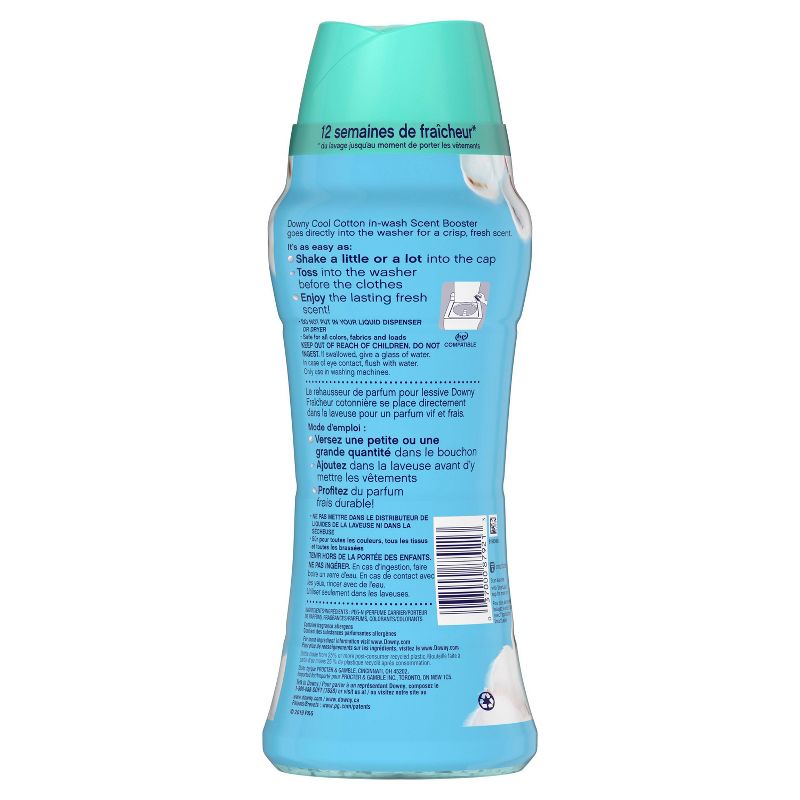 Every day smells like laundry day when you add Downy Cool Cotton In-Wash Scent Booster Beads to your washing machine. This laundry scent booster infuses each load with a crisp Cool Cotton scent that lasts up to 12 weeks from wash until wear. Safe for all washing machines, including HE, it's easy to add a fresh boost of Downy in with your detergent. To use, pour your preferred amount of beads (either a little or a lot) into the cap and toss directly into the drum before adding your clothes. Want even more fresh scent? Add Downy Cool Cotton Fabric Softener and Dryer Sheets to your routine to make your clothes smell even better.