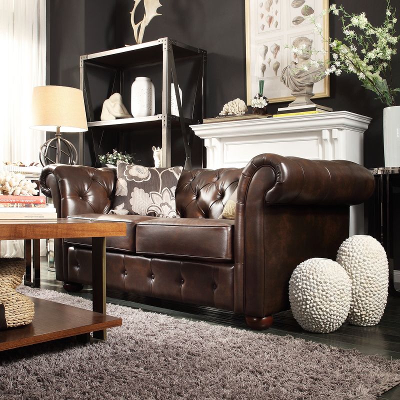 You'll be living it up in style with the Druld Tufted Loveseat from Inspire Q. With scrolled arms, this loveseat makes a cozy spot to sit and relax. The tufted design stands out in luxe style to enhance the look of your home — the only thing missing is a blanket and a good read.