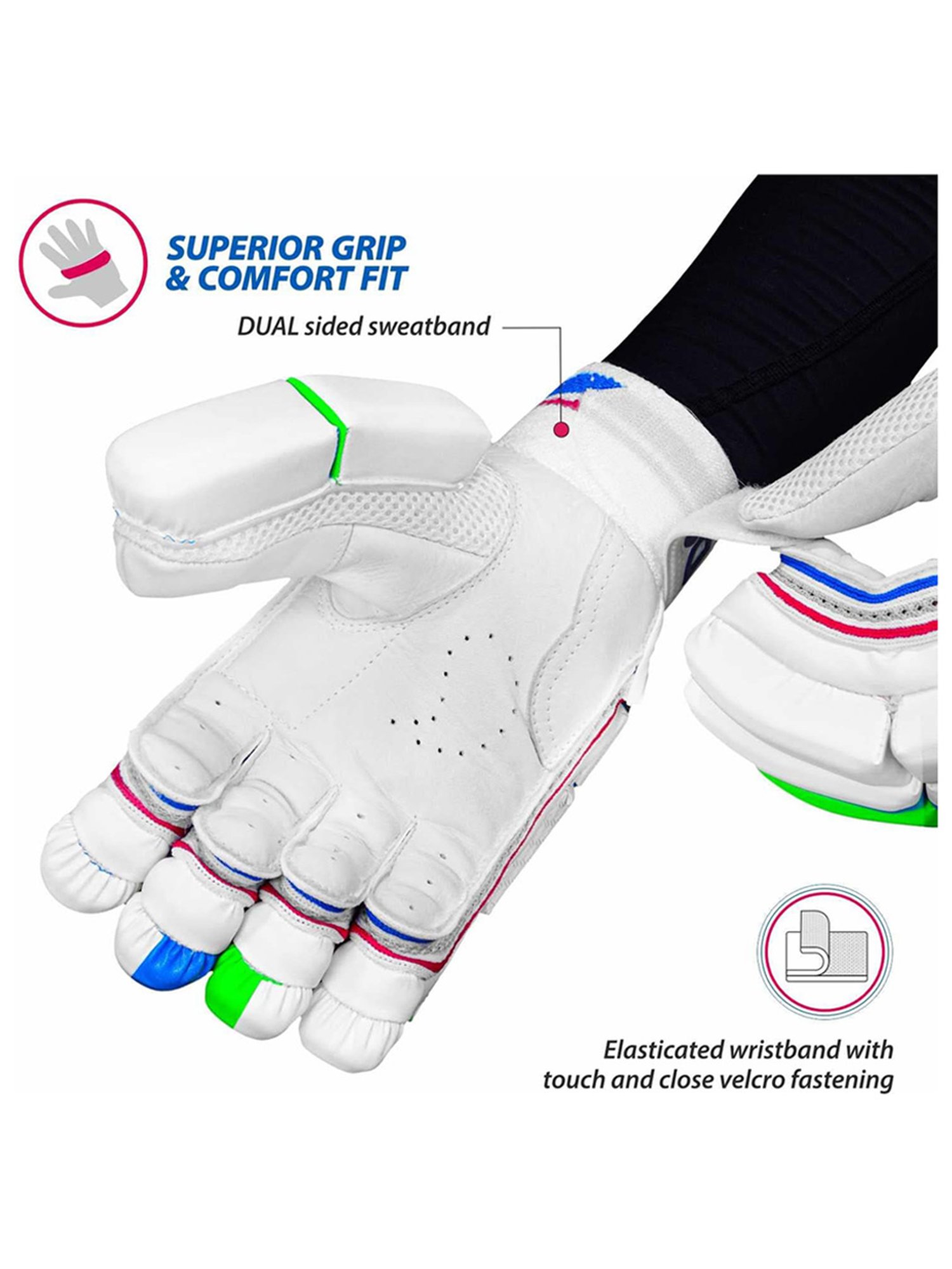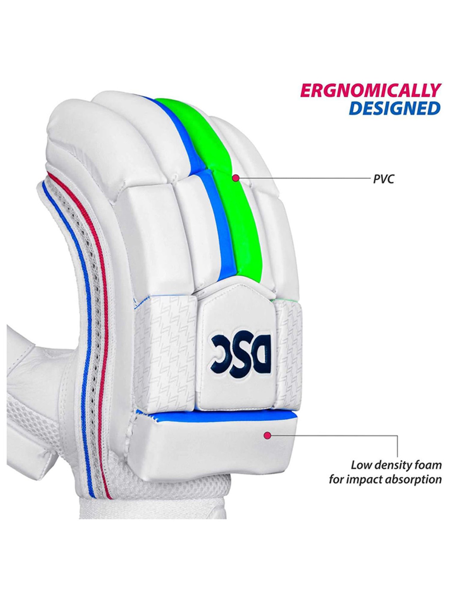 Advance your performance with these cricket batting gloves from DSC, tailored for boys. Engineered to enhance performance, it weighs 290 gm and is made of leather, striking the perfect balance between protection and flexibility. Dominate the pitch with confidence and style. Experience excellence with every swing.