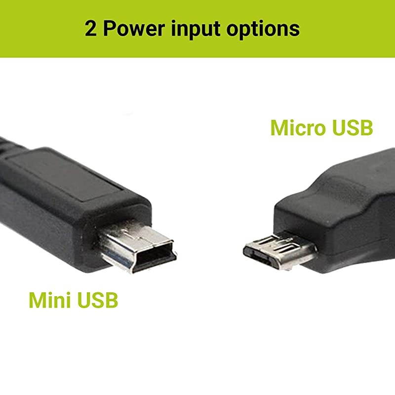 POWER INPUT: Two power input options micro or mini USB plug (utilizes USB cable provided with your Package) *****CHARGE