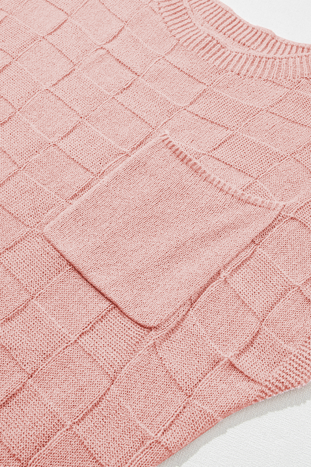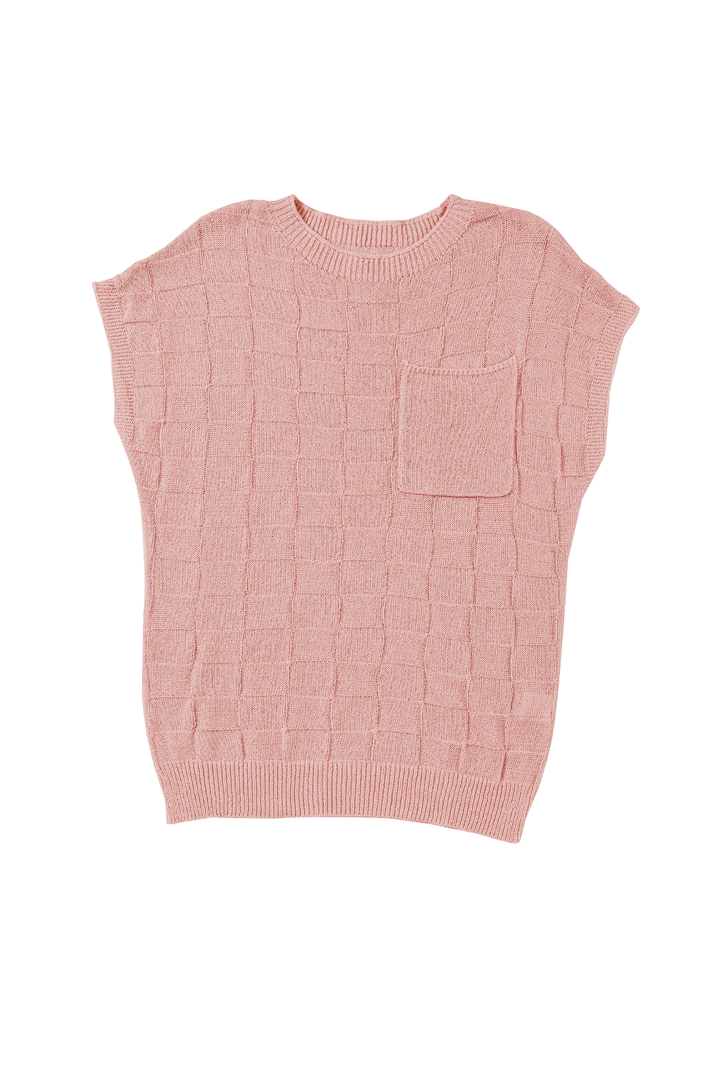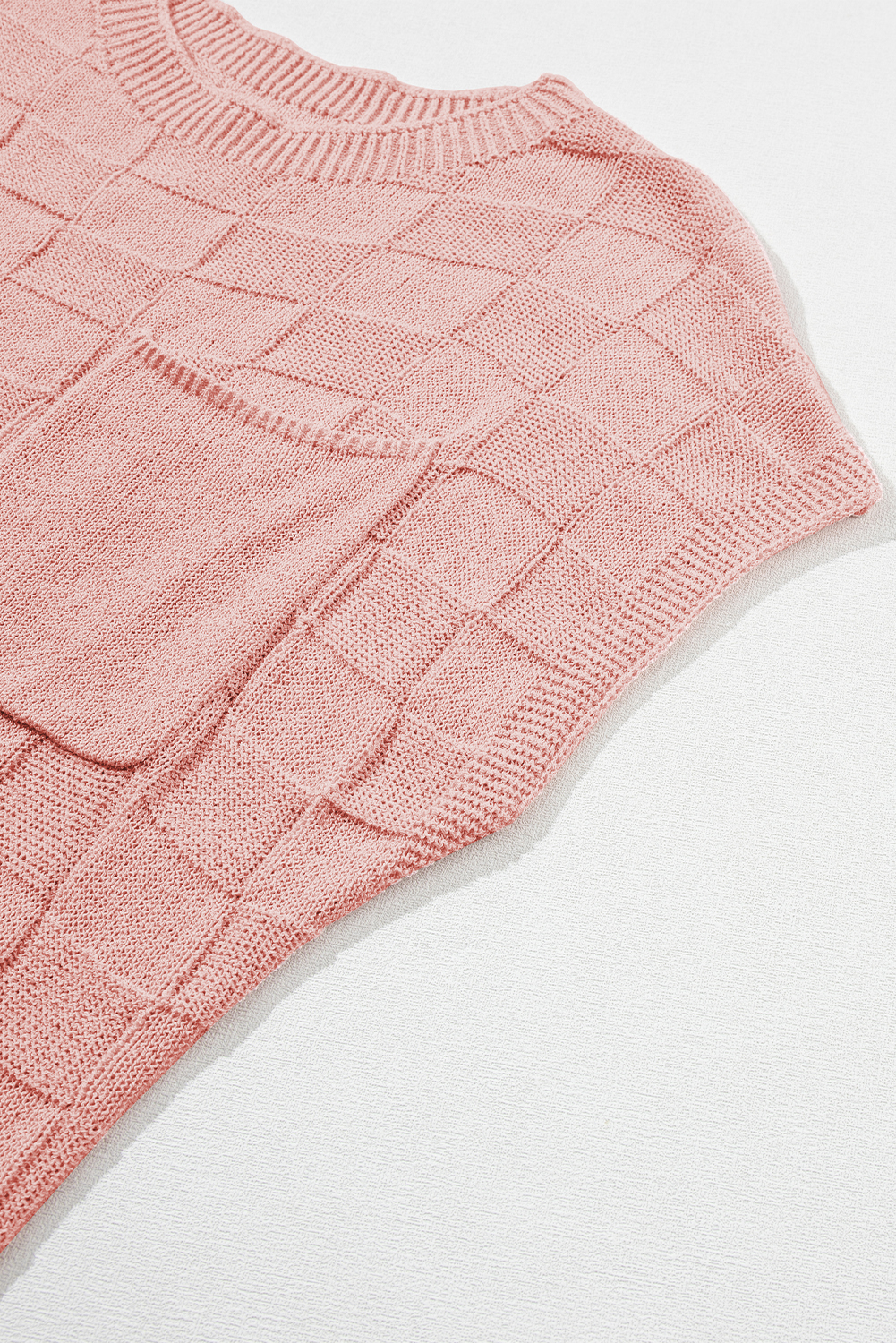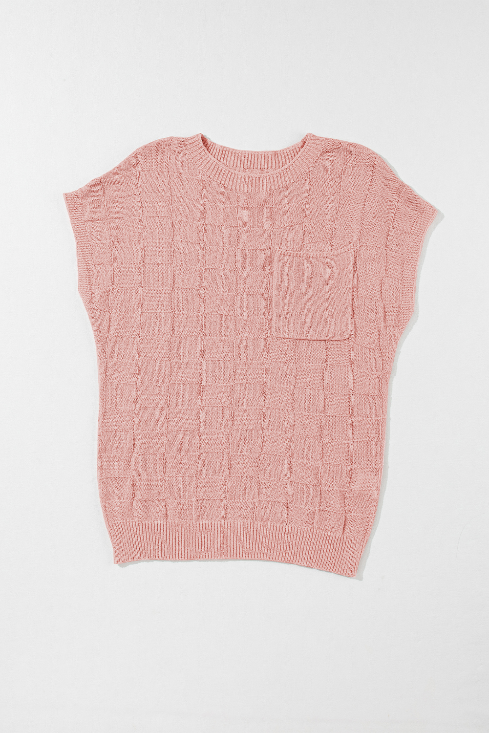 Dusty Pink Lattice Textured Knit Short Sleeve Baggy Sweater
