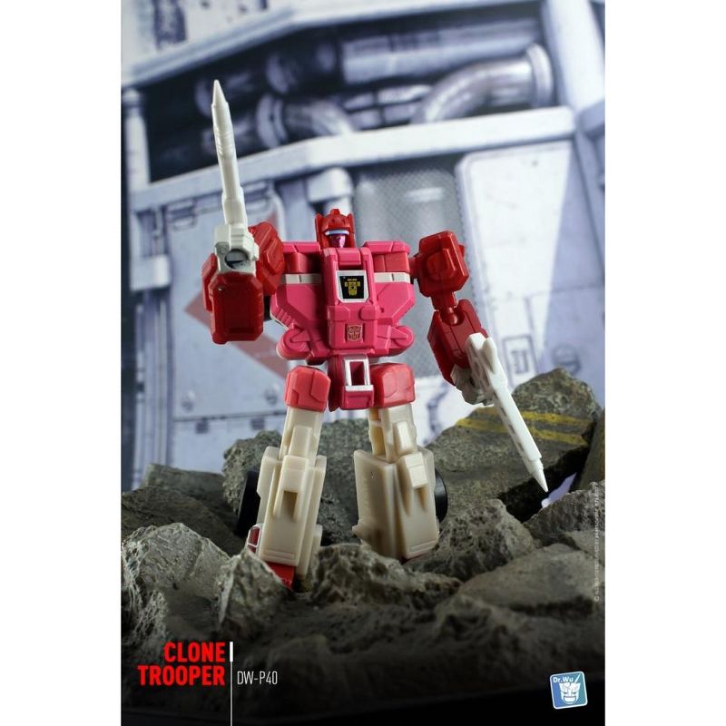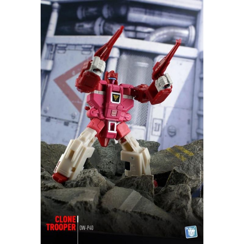 DR. Wu - DW-P40 - Clone Trooper - Weapon Set features two sets of weapons in red and white colors as shown. Weapons are add-on parts for Japanese Legends LG58 Clone Bots Set or the US versions of the Autobot Clones Fastlane and Cloudraker. Figures sold separately.Set Includes - 2 x Red Gun- 2 x White gunThis is a 3rd party add-on not associated with Hasbro or Takara. Other figures show sold separately.