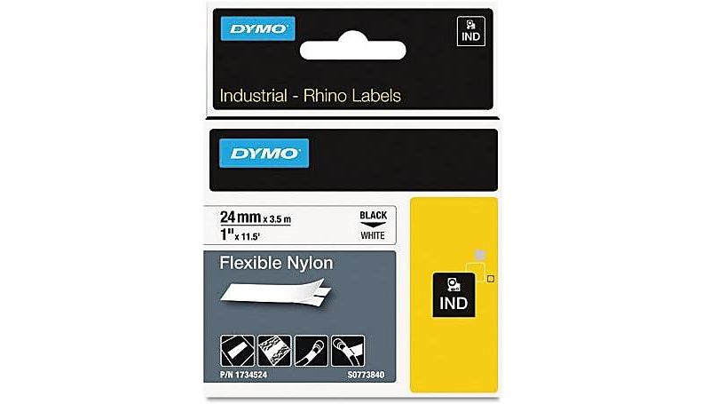 Make durable labels for a variety of applications with DYMO Rhino Industrial Label Cartridges. These labels feature easy-to-peel split backing and a powerful adhesive that stays in place. Available in a variety of sizes and materials, they’re ideal for busy worksites. Label Size - text: 1" x 11 1/2 ft.; Label Color(s): White; Machine Compatibility: All DYMO Rhino Label Makers. Tough, durable labels ideal for jobsite applications. Strong adhesive resists moisture, extreme temperatures, UV light and more. Thermal transfer printing technology – label text won’t smudge, smear or fade. Easy-to-peel split-back design makes applying labels quick and easy. Sold as 1 Roll.