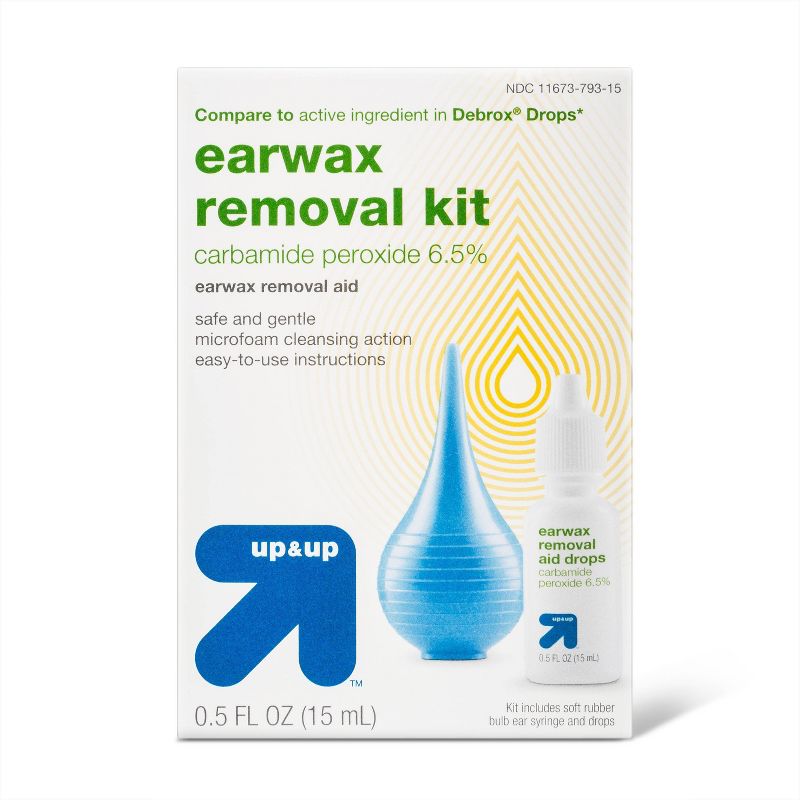 Get rid of ear wax buildup with the help of the Ear Wax Removal Kit from up & up™. This kit includes wax removal drops to help soften and loosen the wax inside your ears for easier removal. Once the wax is loosened, use the included bulb to flush out your ear. The wax removal kit has everything you need to clear your ear passages, and comes with easy-to-use instructions.