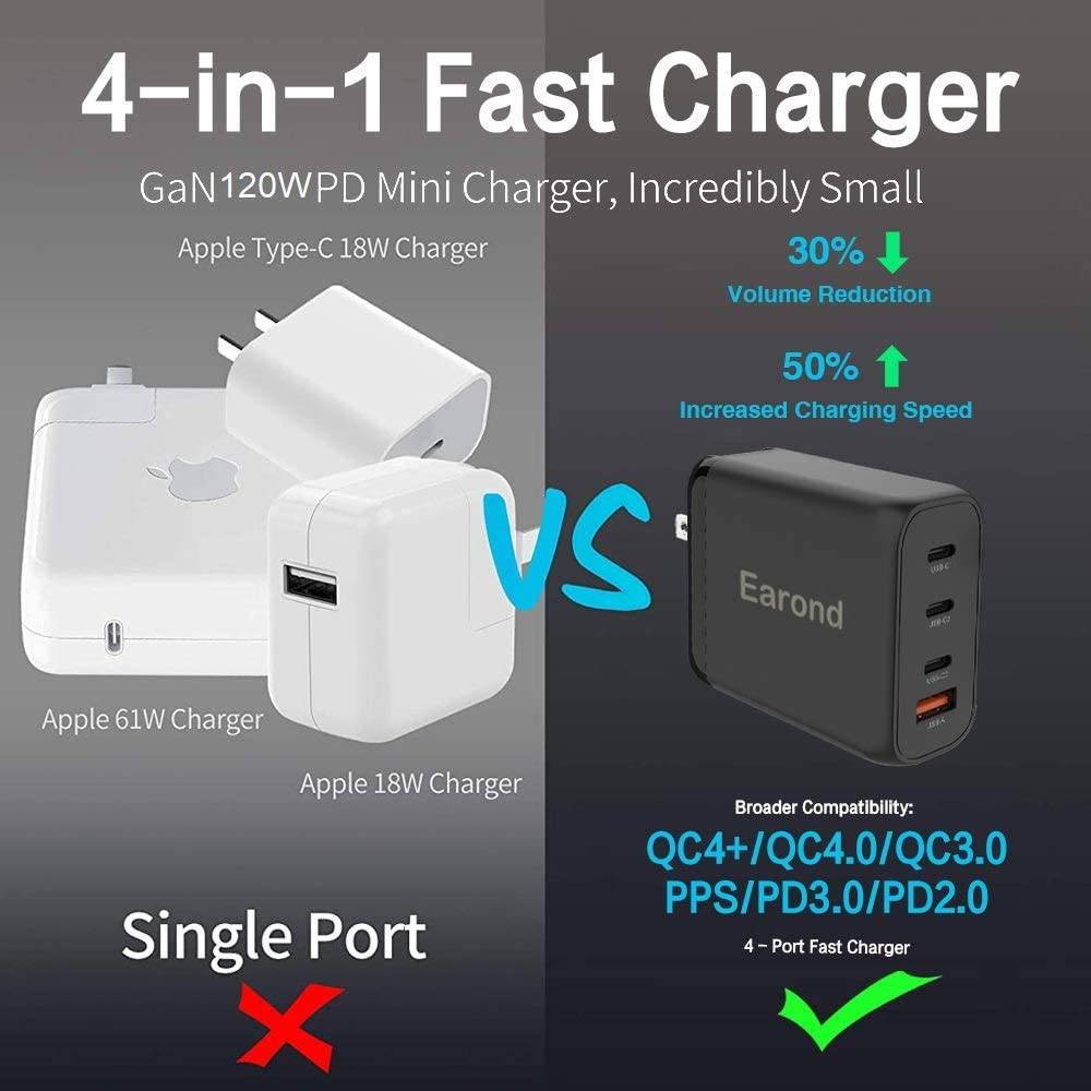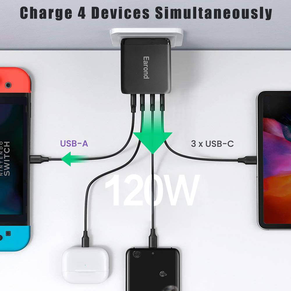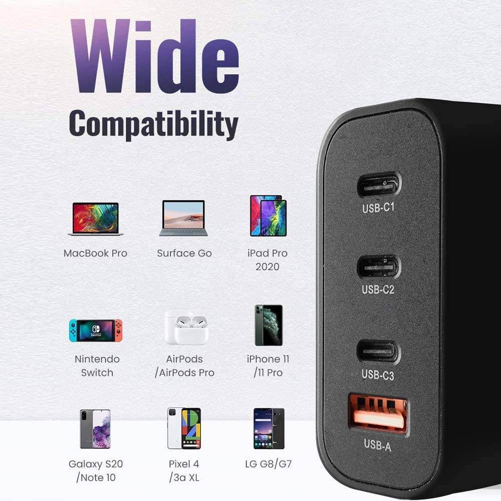 Universal Compatibility:With 100W high power output and PD & QC charging protocols,4 ports PD+QC3.0 quick charge your MacBook /Pro/Air,Chromebook,Switch,iPad Pro,iPhone 12/Pro/Pro,AirPods Pro,and more.