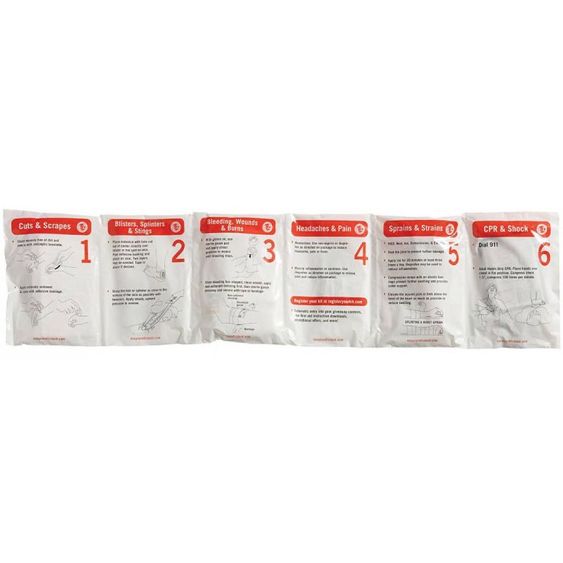The All Purpose First Aid Kit is a one-stop solution and can be utilized for nearly any first aid scenario, from backyard cuts and scrapes to a sprained ankle on the soccer field. In addition, the All Purpose First Aid Kit has has supplies and instructions to treat shock and administer CPR during an emergency.With the EZ Care First Aid System®, all supplies are organized and packed into injury-specific pouches. Quick-reference instructions are included so that anyone can quickly and confidently provide first aid.