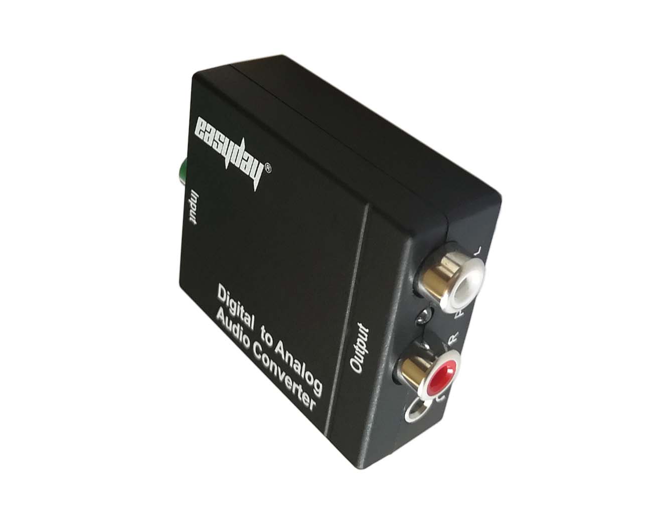 This Digital to Analog Audio Converter is designed for either home or professional audio switching. It converts Coaxial or Toslink digital audio signals to analog L/R audio and 3.5 mm jack simultaneously and available for connection to an external device such as an amplifier via standard RCA-style jacks.