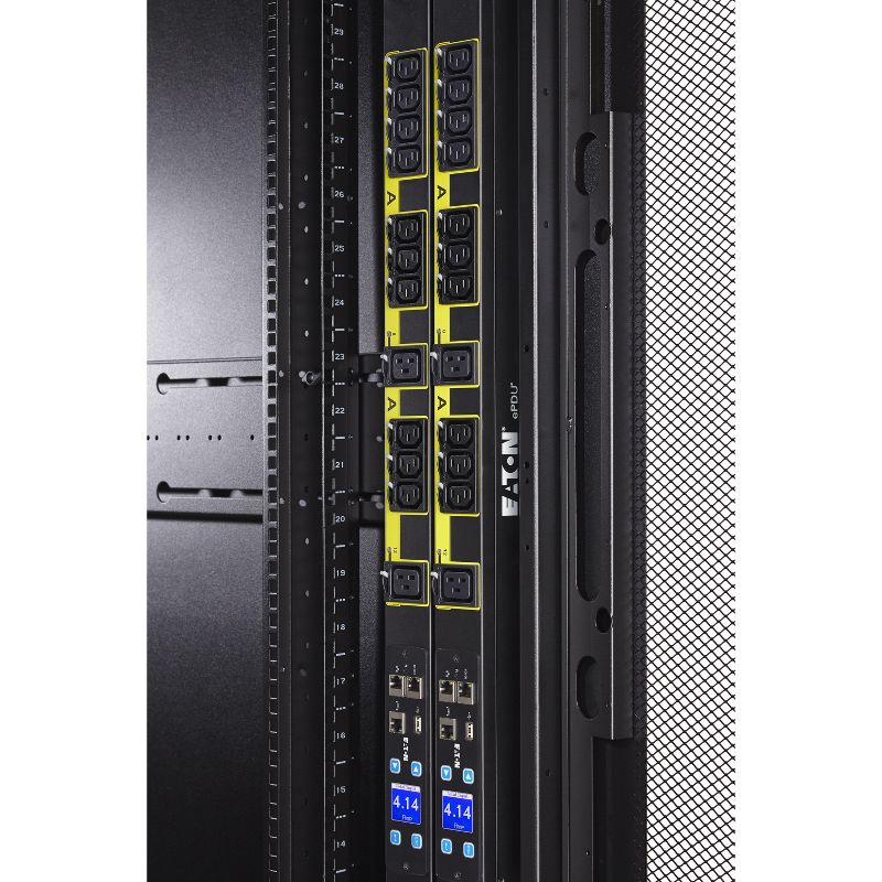 Eaton ePDU G3 Managed technology provides a best-in-class design featuring billing grade accuracy monitoring at the outlet level on a local LCD pixel display or over a network connection. The high accuracy meter will measure current, voltage, power and energy for load balancing, capacity planning, efficiency monitoring and energy usage reporting. Outlet switching allows for on, off or reboot of individual outlets, which reduces the cost of managing remote or local IT data center environments. The robust design is UL rated to operate at 140 degrees F (60 degrees C) ambient operating temperature for containment and high temperature environments. Outlet switching for on, off and reboot control to reduce management costs Outlet level metering to +/- 1% billing grade accuracy for customer billing or level 3 PUE calculations LCD pixel display with hot-swap capability enables load balancing and local setup of key parameters such as IP address and display orientation Hig