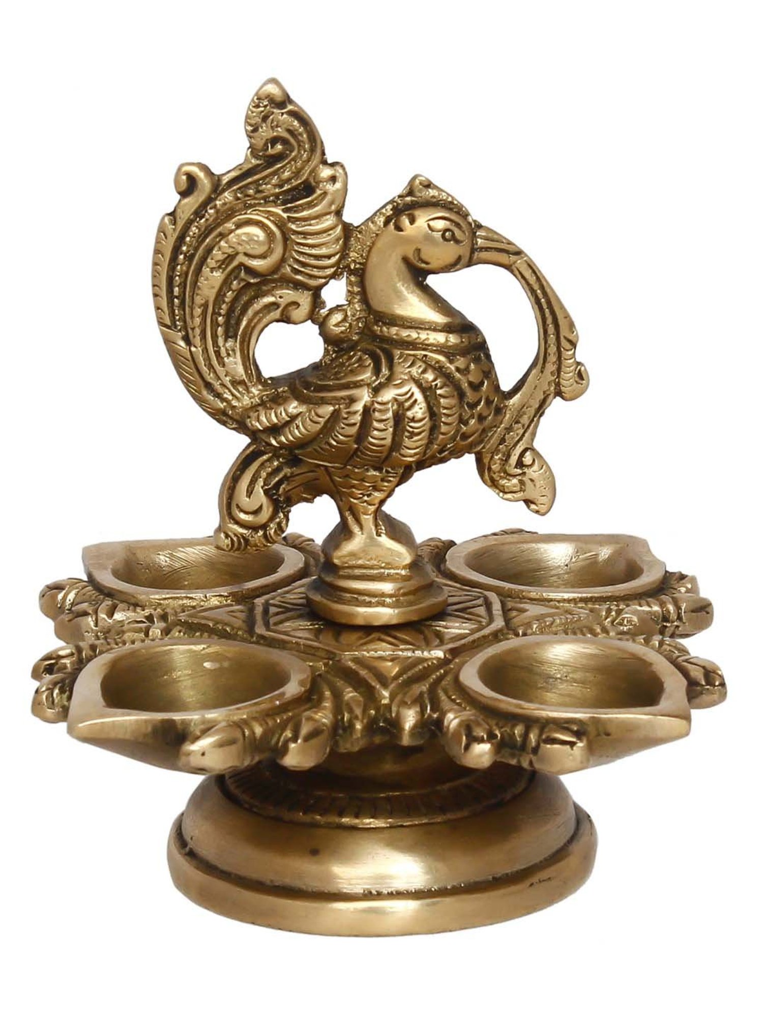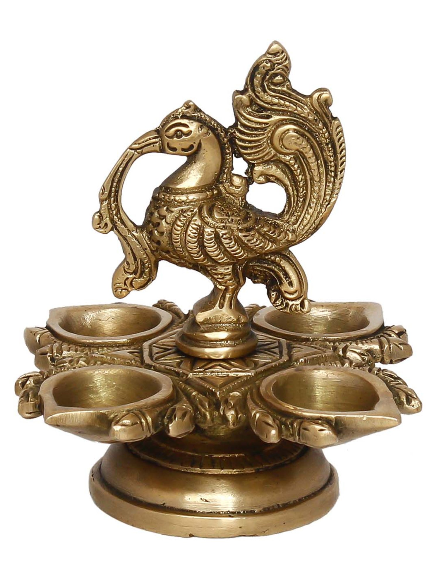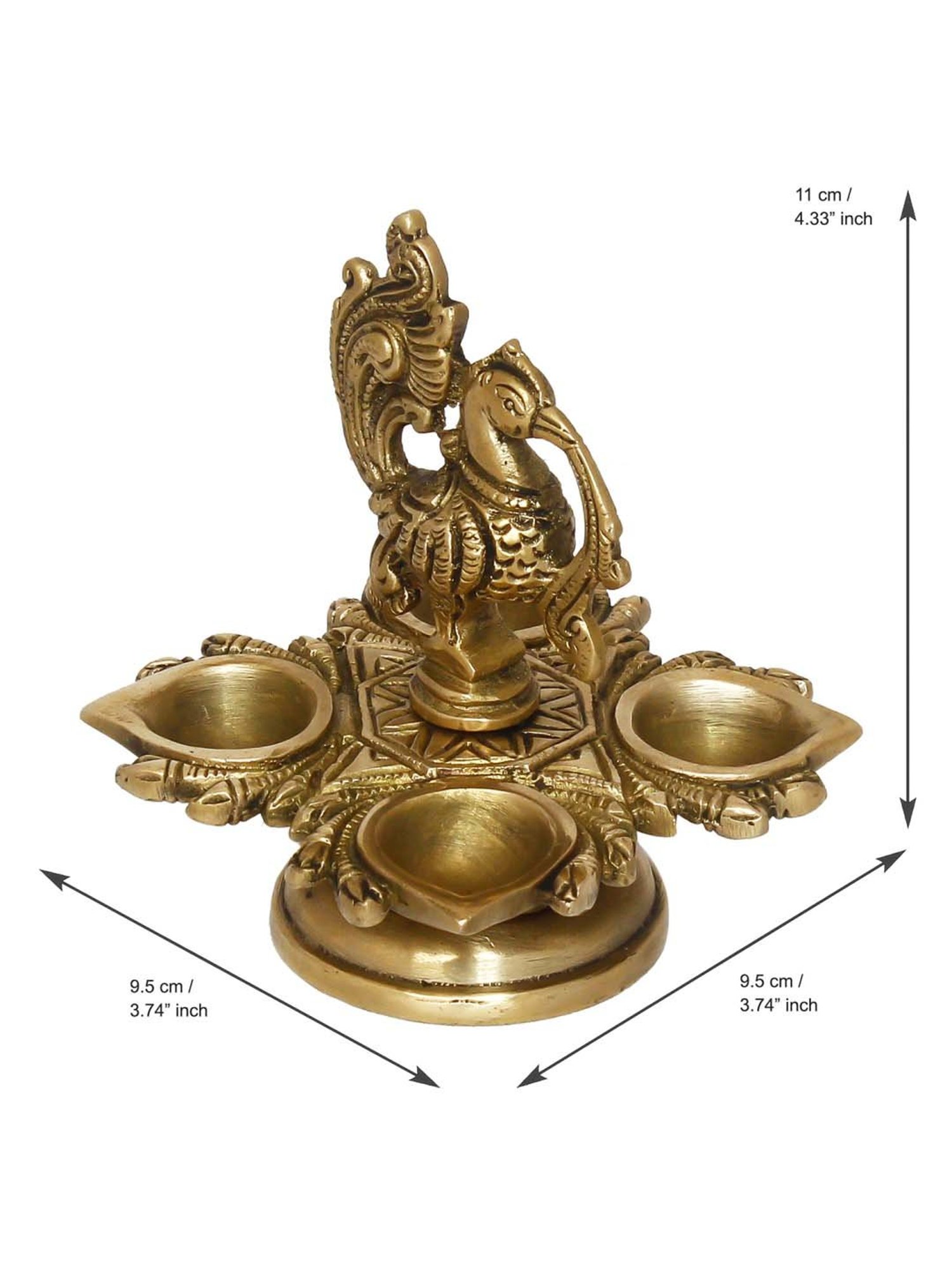 Lend a hint of decoration to your home with this eCraftIndia decorative handcrafted peacock brass showpiece with diya for 4 wicks. Exquisitely designed, this diya has a unique antique look. Exquisitely designed, this diya has a unique antique look. This gorgeous and exquisite figure is perfect for your home decor. It is made of brass in antique finish. It's a wonderful keepsake for your home and unique as gifts for your loved ones. It has a textured pattern and comes in a set of 1 decorative diya.