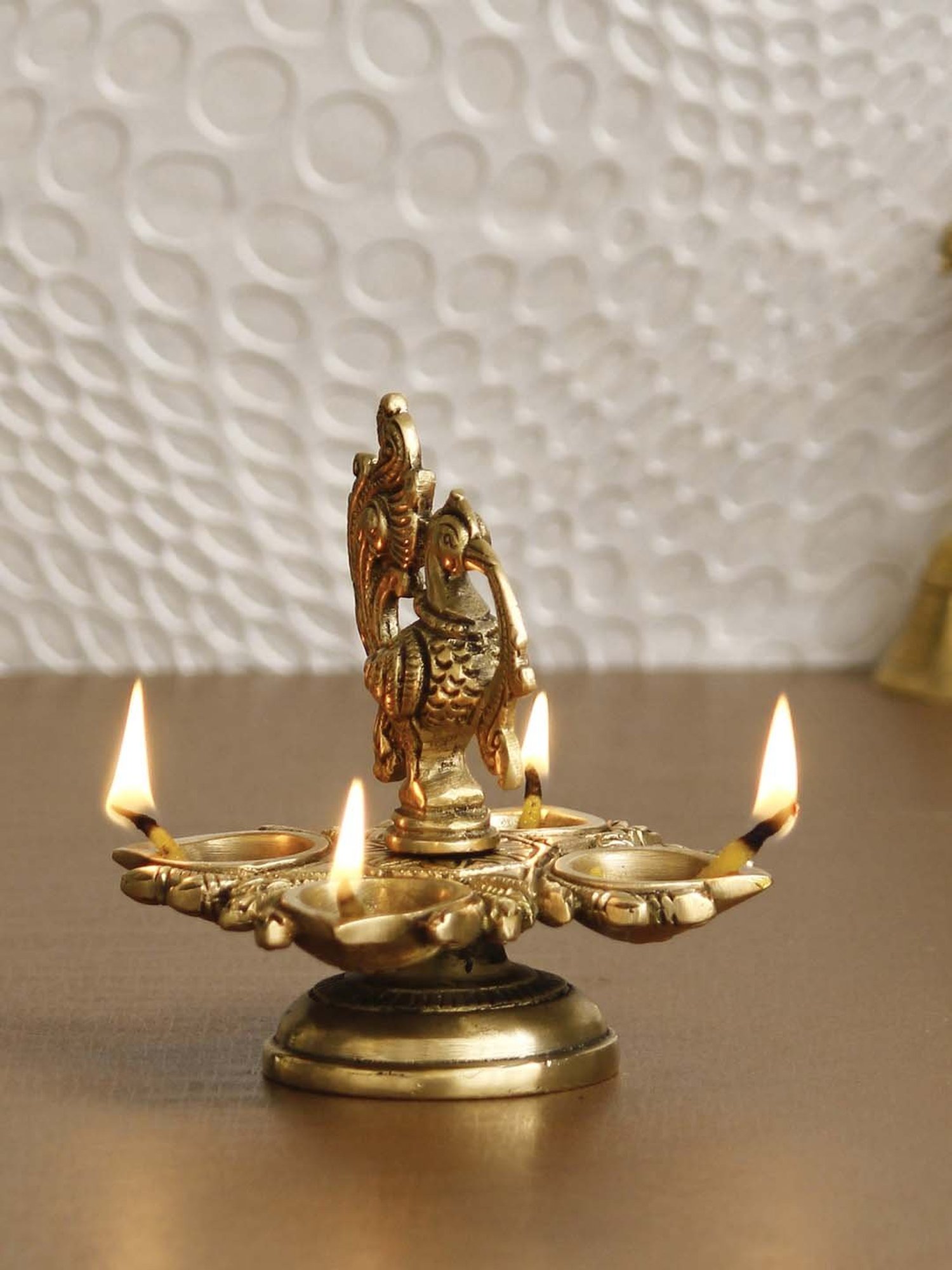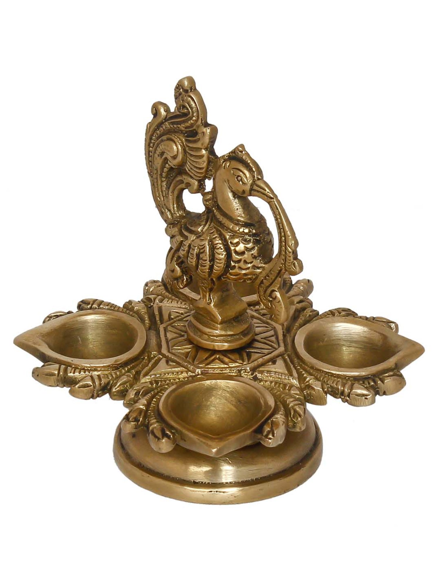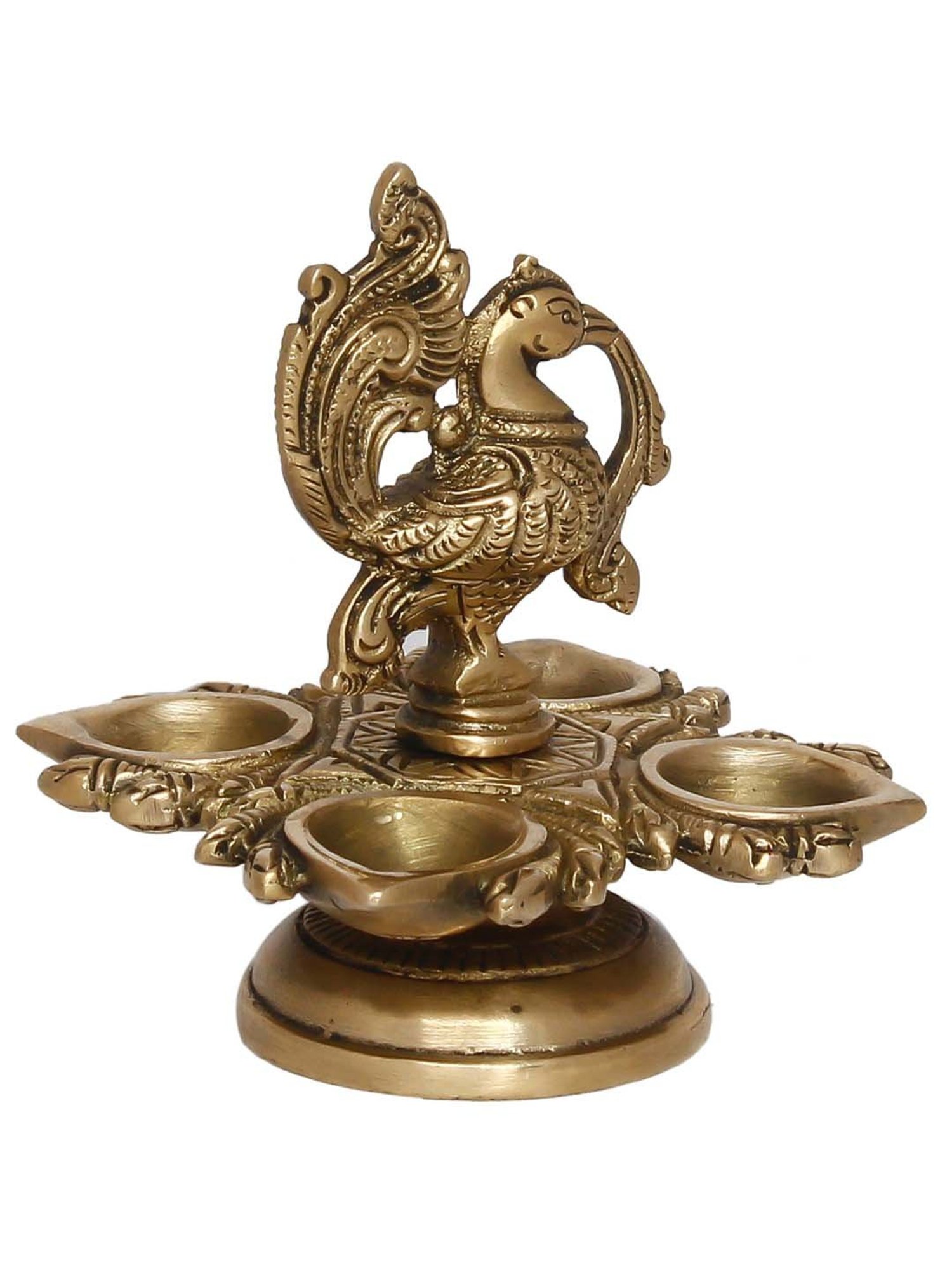 Lend a hint of decoration to your home with this eCraftIndia decorative handcrafted peacock brass showpiece with diya for 4 wicks. Exquisitely designed, this diya has a unique antique look. Exquisitely designed, this diya has a unique antique look. This gorgeous and exquisite figure is perfect for your home decor. It is made of brass in antique finish. It's a wonderful keepsake for your home and unique as gifts for your loved ones. It has a textured pattern and comes in a set of 1 decorative diya.