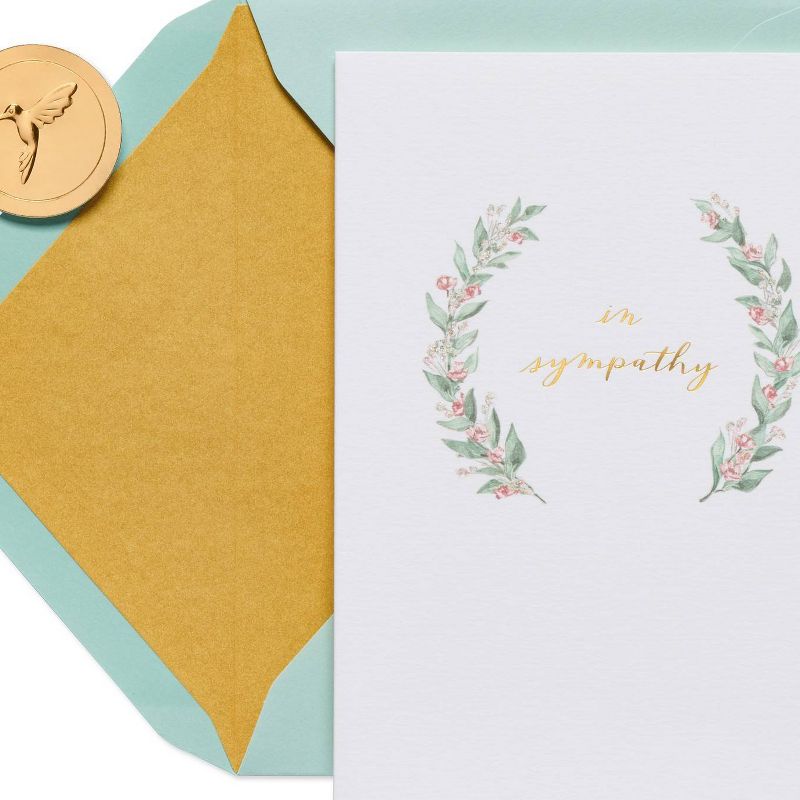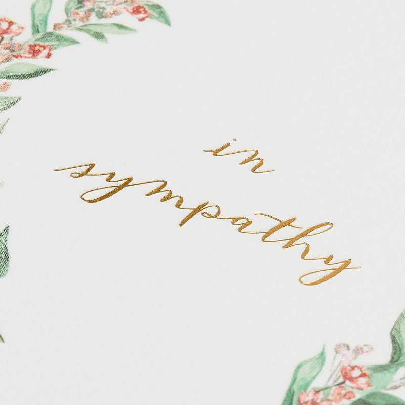•Sympathy greeting cards by Papyrus offer premium style, like this thoughtful card with a floral motif and embellishments of foil and glitter.