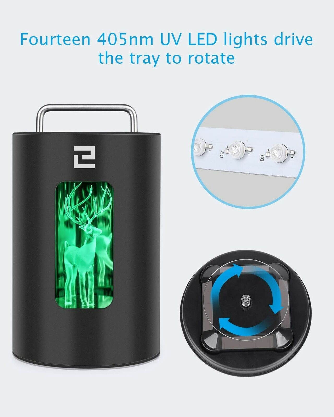 ELEGOO Mercury Curing Machine 405nm Resin UV Curing Box with Light Driven Tur...