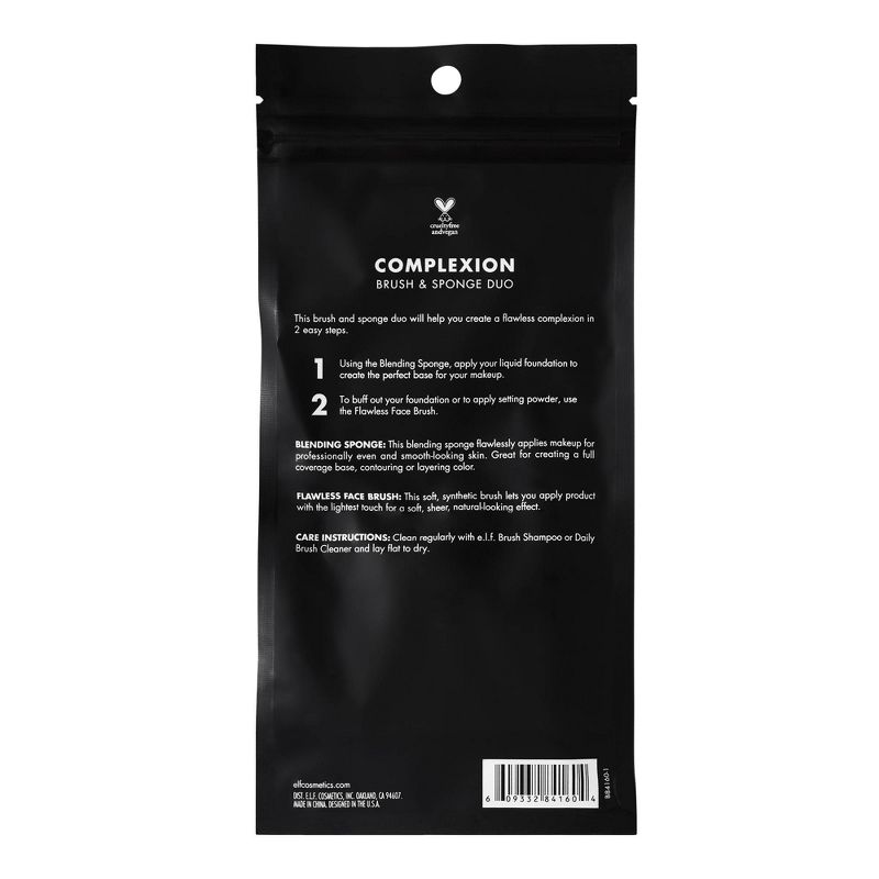 The e.l.f. Complexion Brush & Sponge Duo will help you create a flawless complexion in 2 easy steps.