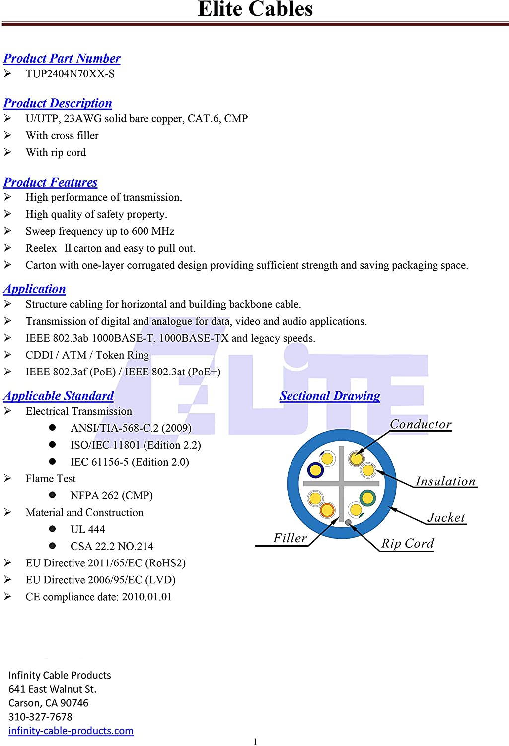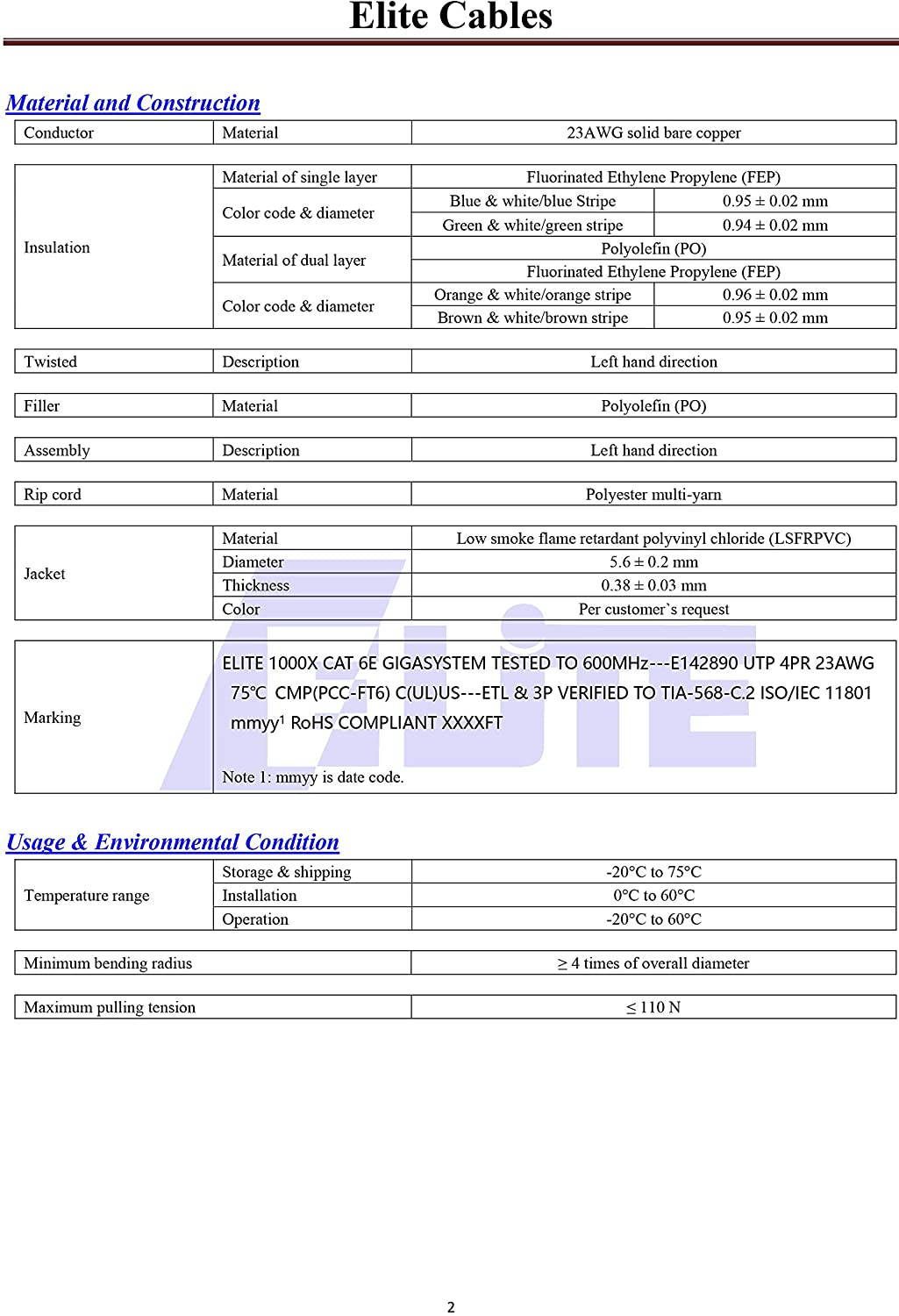 Elite Cat6e Plenum (CMP) Features