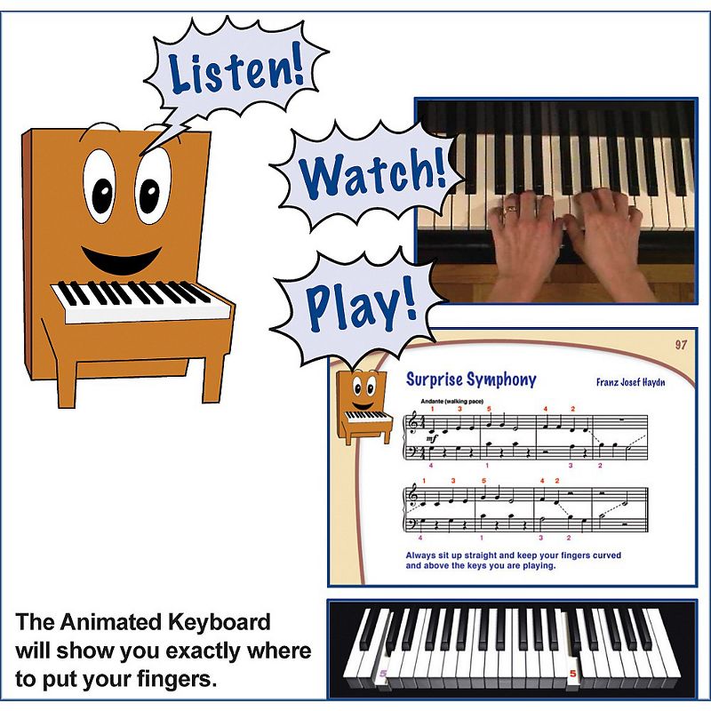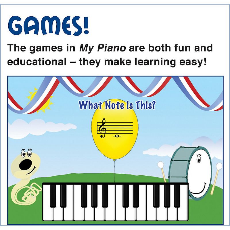 The eMedia My Piano DVD stars Pam the Piano, an animated character who guides children through their piano lessons. Written by former Juilliard School of Music instructor Irma Justicia, M.A. the DVD includes over 100 lessons. aspiring child will learn proper hand position, the names of musical notes, how to play accompaniments, how to read music, and much more. Games included on the My Piano DVD get ng students excited about learning while practicing their new musical skills. The instructional DVD also includes a special bonus download toolkit with a digital metronome and a digital recorder to use on computer. eMedia recommends the My Piano DVD for children ages 5 and up.