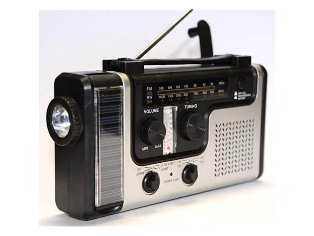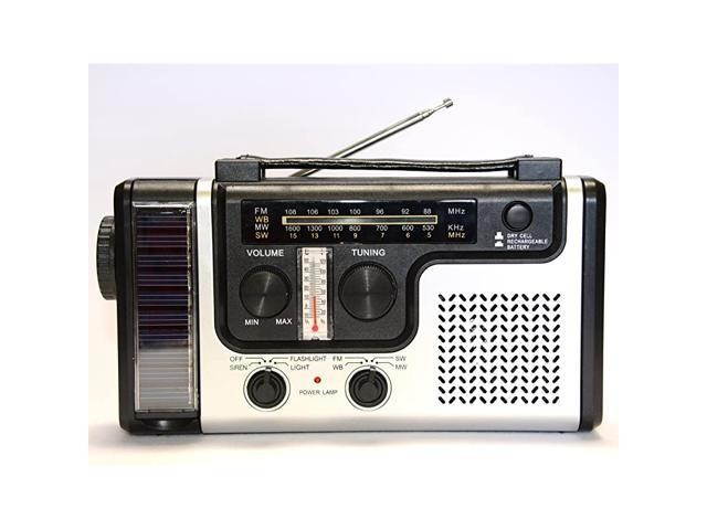 **********This is a MUST for any survival kit. *****It comes with AM/FM/SW/weather band radio, thermometer, cell phone charger jack, dc to USB charger adaptor, bright LED flashlight, and a flip up LED reading Light. *****It can be charged by solar, hand crank, 110 outlet (power adaptor not included), or 3 AA batteries (not included). *****Unit is small, compact, light, and easy to carry. *****Brand New FM Shortwave Weather band Solar Dynamo Rechargeable Radio Includes Siren - Light - Thermometer Charger