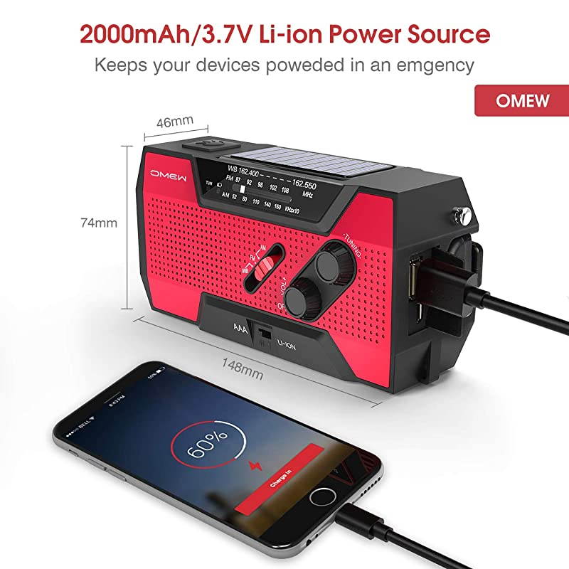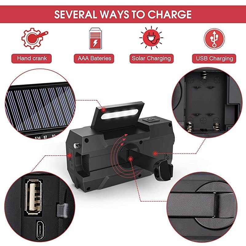 Instruction: Rotate the rocker clockwise or counterclockwise and keep rotating at a constant speed of 130-150 RPM for 1 minute. It can be used for lighting up to 20 minutes and the radio for 5 to 10 minutes. Please turn off the USB output device when you are using radio to receive the AM band, or it may have noise interface for radio. For the first time or the machine is not used for more than 60 days. Put the radio under the strong solar light (sun>86000LUX) for 30 minutes, charging the internal battery and regenerating the battery.