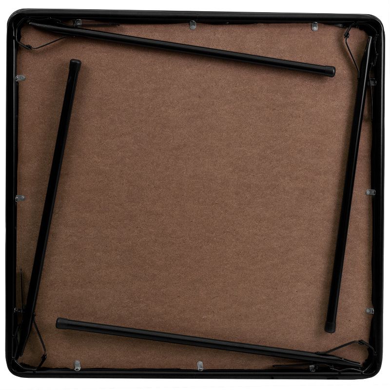 Create more room for guests instantly with this convenient square black folding card table. It's the perfect way to provide extra seating when you need it. This table is perfect for everything from weddings, baby showers and banquets to game nights with family and friends or that 1,000 piece puzzle you've wanted to tackle. The versatility of this piece makes it perfect for any occasion. The foam padded top is perfect for preventing cards from sliding off of the table. This table can be used for gatherings, arts and crafts or extra dinner seating and is a wise investment for any catering or hospitality business. When no longer in use, fold the legs in and store away. Additional Features: Plastic Floor Glides keep floors free from damage, Folding table for hospitality facilities, banquet halls, hotel, and home use.
