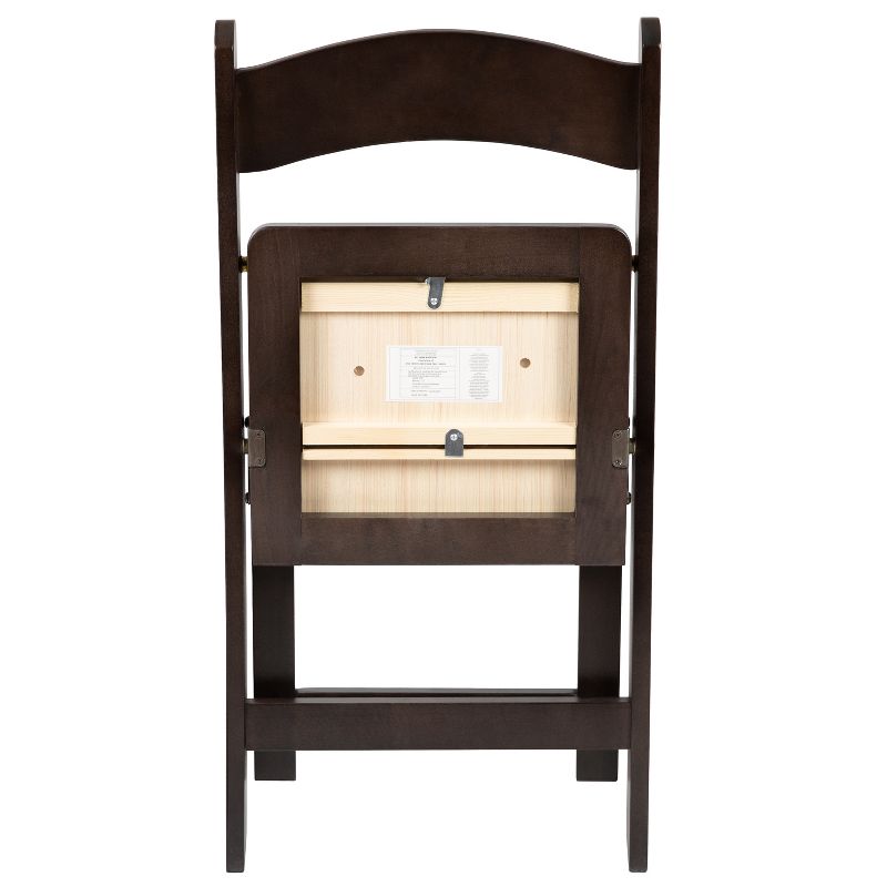 Create a memorable event with this stunning Chocolate Folding Chair with Vinyl Padded Seat. The chair is constructed of Beechwood that is finished in a clear lacquer varnish. The vinyl padded seat is detachable for easy replacement in heavy use venues. With an easy to clean surface, simply dust off or wipe off the surfaces. This chair has a compact design for easy set up and take down and folds for transport or storage. This wood folding chair is the premier solution for banquet halls, weddings, graduations, and other upscale events. The functional design will add a sophisticated look to your home dining room, or kitchen and allows you to accommodate additional guests for a party, indoors or outdoors. Additional Features: Designed for Commercial Use; Suitable for Home Use, Folded Size: 17.5"W x 2.5"D x 35"H, Folding chair for rental companies, banquet halls and extra seating in the home.
