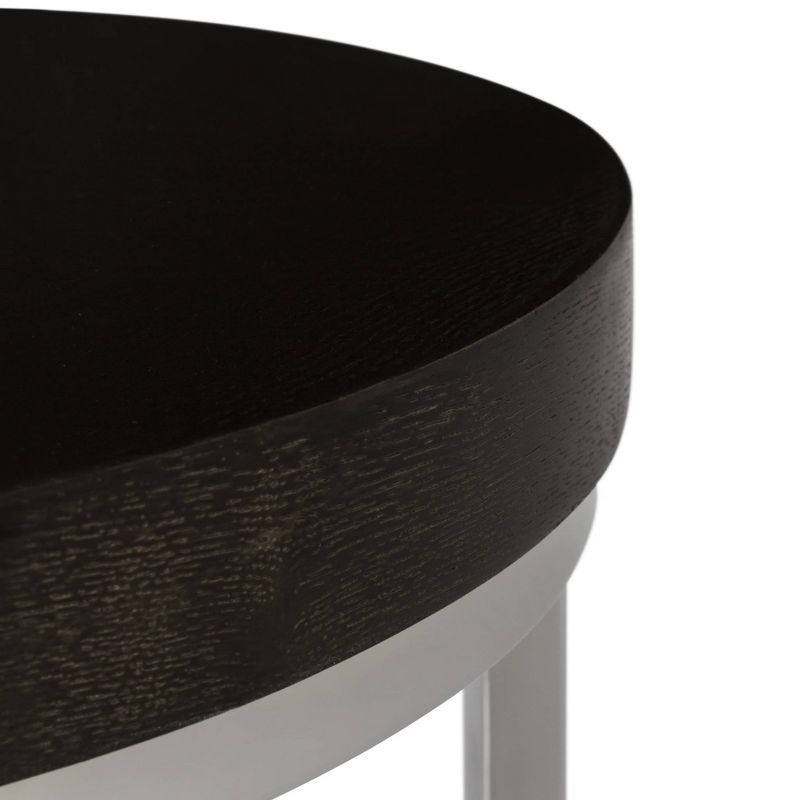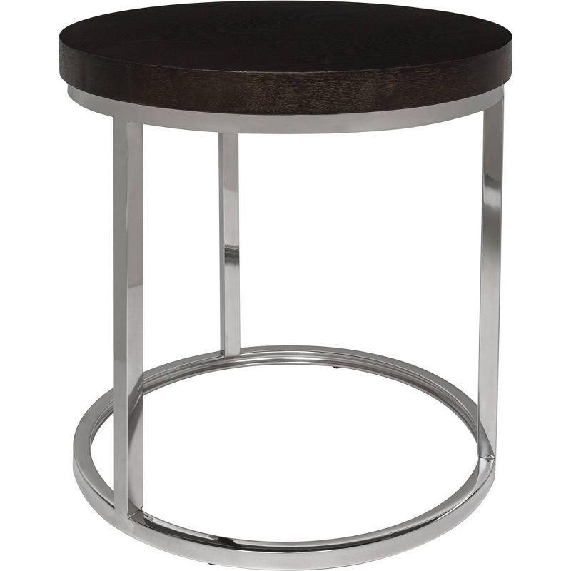 An iconic European modern shape gets a 21st century update in the Turner round end table. With a contemporary pairing of wood atop a polished stainless steel base, Turner is an airy, smart and subtle addition to the living room area. This eye grabbing accent table has a cylinder shape that is as uncommon as it is beautiful. This end table is able to support up to fifty pounds. The Turner round end table is the perfect addition for Contemporary, Modern or Transitional style rooms.