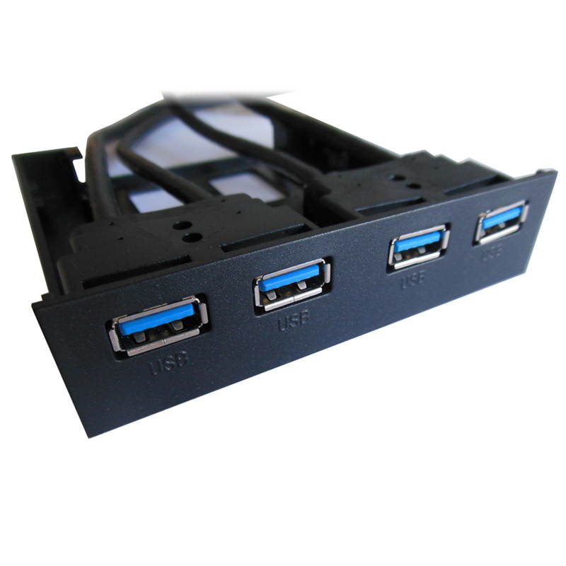 | Features | 3.5-inch Front Bay to 4-Port USB Panel Hub and 1 HD Audio Port/1 Microphone Port turns any available 3.5-inch computer case front bay into a 4 Port USB 3.0 hub This front panel hub adds four easily accessible USB ports to the front of your computer case through a 3.5-inch bay USB 3.0 Ports, compliant with the USB 3.0 standard which supports up to 5Gbps of bandwidth and up to 900mA of power. Installation is quick and easy, and the unit is plug and play. 2 x USB 3.0 20pin headers on motherboard are needed Simply fit the bay into the space with the screws provided, plug the bay into the USB 3.0 19/20 pin connector on the motherboard, and you're all set. Features: Ports: 4 x USB 3.0 Female USB Data Transfer Rate: Up to 5Gb/s USB 3.0 Supper Speed Fits: 3.5" Open Bay Space USB 20pin adapter cable length : 60CM Compatible with Windows XP/Vista/7/8/8.1 Plug and Play Hot Swappable Backwards compatible with USB 1.1,USB 2.0 |
