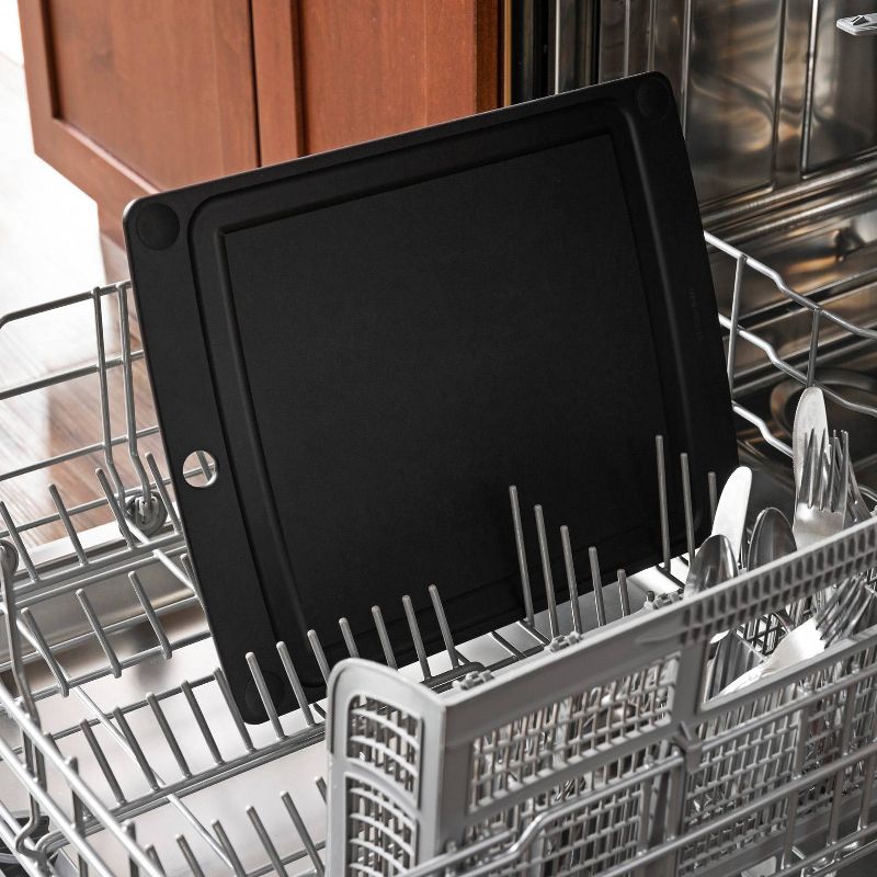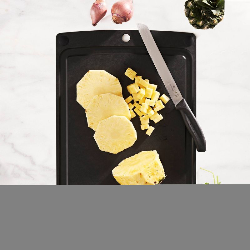 Epicurean cutting boards are made from paper composite and are made in the USA. Epicurean products have the look and feel of wood without the required wood board maintenance. Both sides of the board can be used for food preparation and one side features a generous juice groove. Save time and effort by washing and santizing this board in the dishwasher.