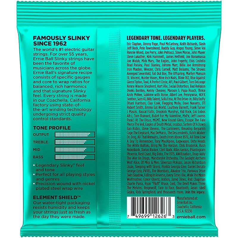 Ernie Ball Not Even Slinky electric guitar strings are perfect for those who like to detune their instrument to lower tuning combinations. Metal fans worldwide have gravitated towards the Not Even Slinky set to give their guitar the optimal gauge combination for Drop D and Drop C tuning. The wound strings are made from nickel-plated, steel wire wrapped around a hex-shaped steel core wire. The plain strings are made of specially tempered, tin-plated, high-carbon steel, producing a well-balanced tone for guitar. All Ernie Ball strings are precision manufactured to the highest standards and the most exacting specs to assure consistency, optimum performance, and long life. Ernie Ball is a pioneer of rock and roll guitar strings. Jimmy Page, Eric Clapton, Steve Vai, and Slash are among the long list of Slinky players. Gauges: 12-16-24p-32-44-56.