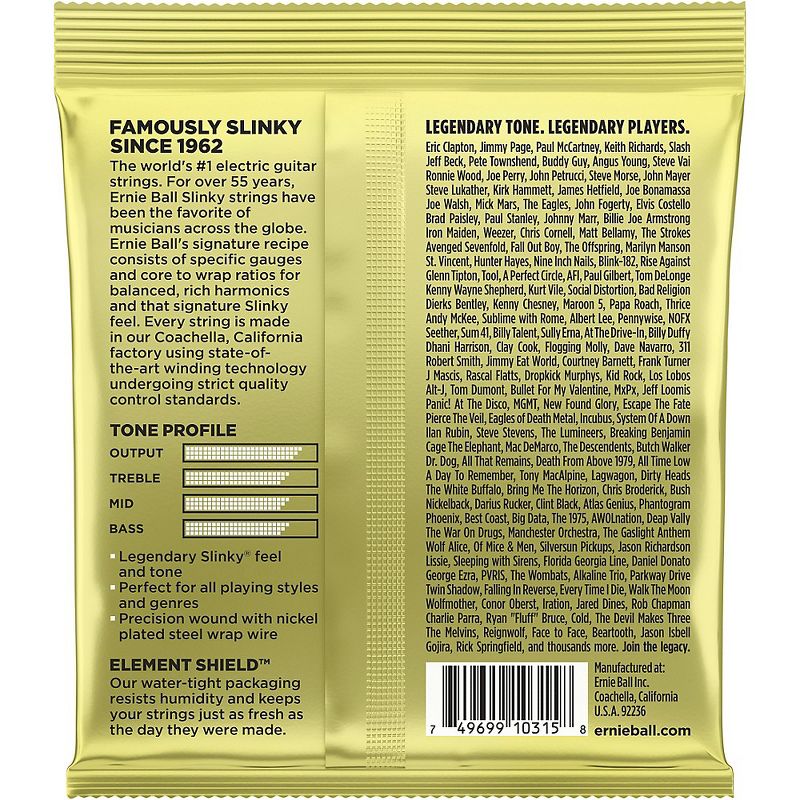 Ernie Ball welcomes its heaviest string set to the world-famous Slinky line of electric guitars strings. Mammoth slinky have been specifically developed for ultra-low tunings including drop A, drop B and C standard while providing the same iconic tone and feel Slinkys are known for. Mammoth Slinky strings are ideal for players who prefer a powerful and heavy set of strings delivering punishing low end and a brutally thick tone with optimal tension and definition. Mammoth Slinky sets also feature nickel-plated steel wrap wire around a steel-plated hex core for that iconic Slinky feel and tone that players have relied on for decades.Gauges: 12-16-24w-34-48-62