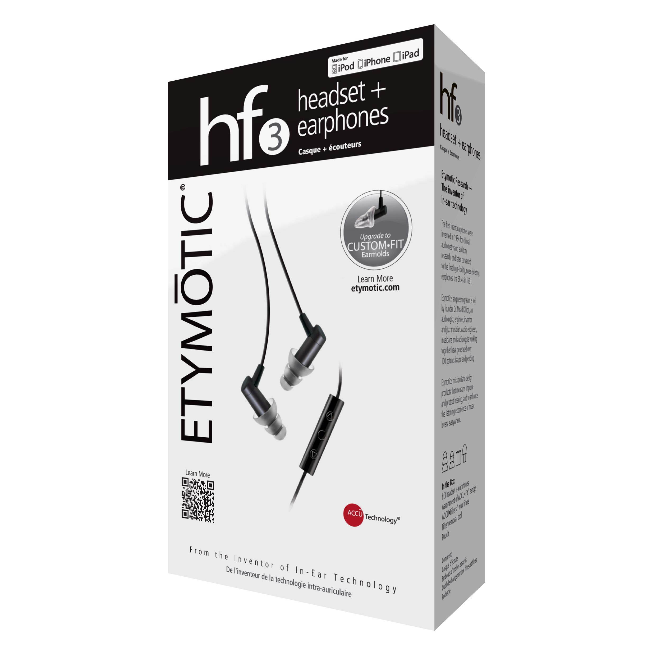 These Etymotic Research hf3 Earbuds with Microphone are high-performance, noise-isolating earbuds with a 3-button in-line control. With 35 to 42 decibels of noise isolation, you can completely shut the world out. And you can answer calls from your phone without even having to pull it out of your pocket.