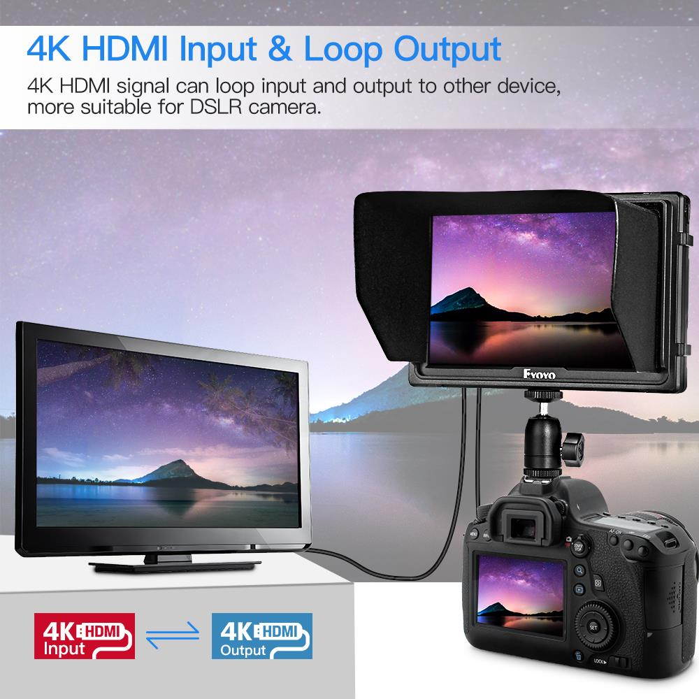 ? The E7S PRO 0n-camera monitor support 4K HDMI signal, it can loop output to the other monitor or device when HDMI signal input to Eyoyo E7S monitor, while still maintaining the original video quality.