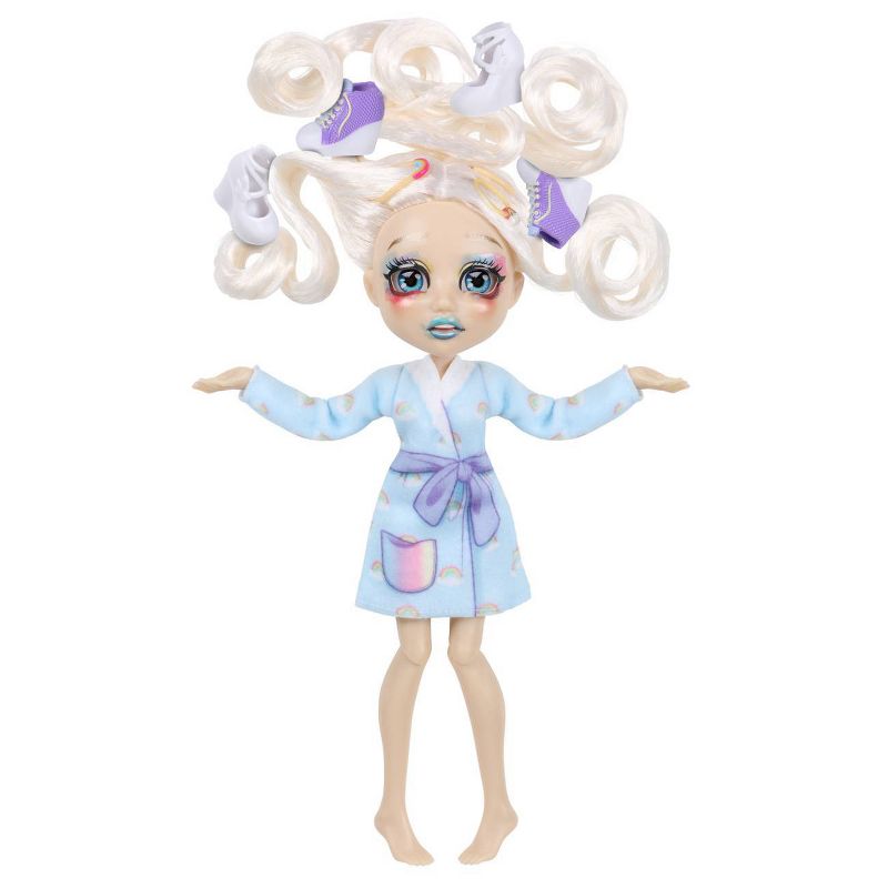 First, begin the head-to-toe transformation by placing @2Dreami in her Styling Chair. Next, pamper her by applying the magic spa mask. Once she's feeling relaxed, remove it to reveal a look she'll love. Then, remove the accessories stuck in her hair and brush it out until it's silky smooth! You can then use the included Hair Dye Wands to create dreamy pink and blue colored waves in her hair, before creating a magical Mermaid Braid with the exclusive Braiding Tool.